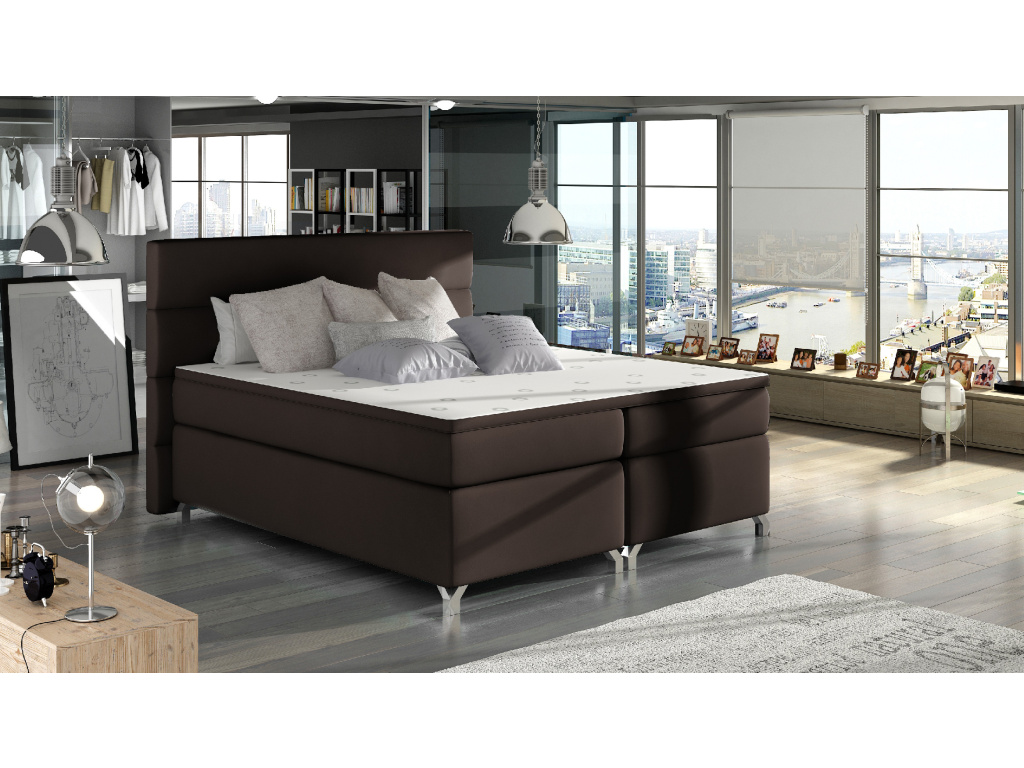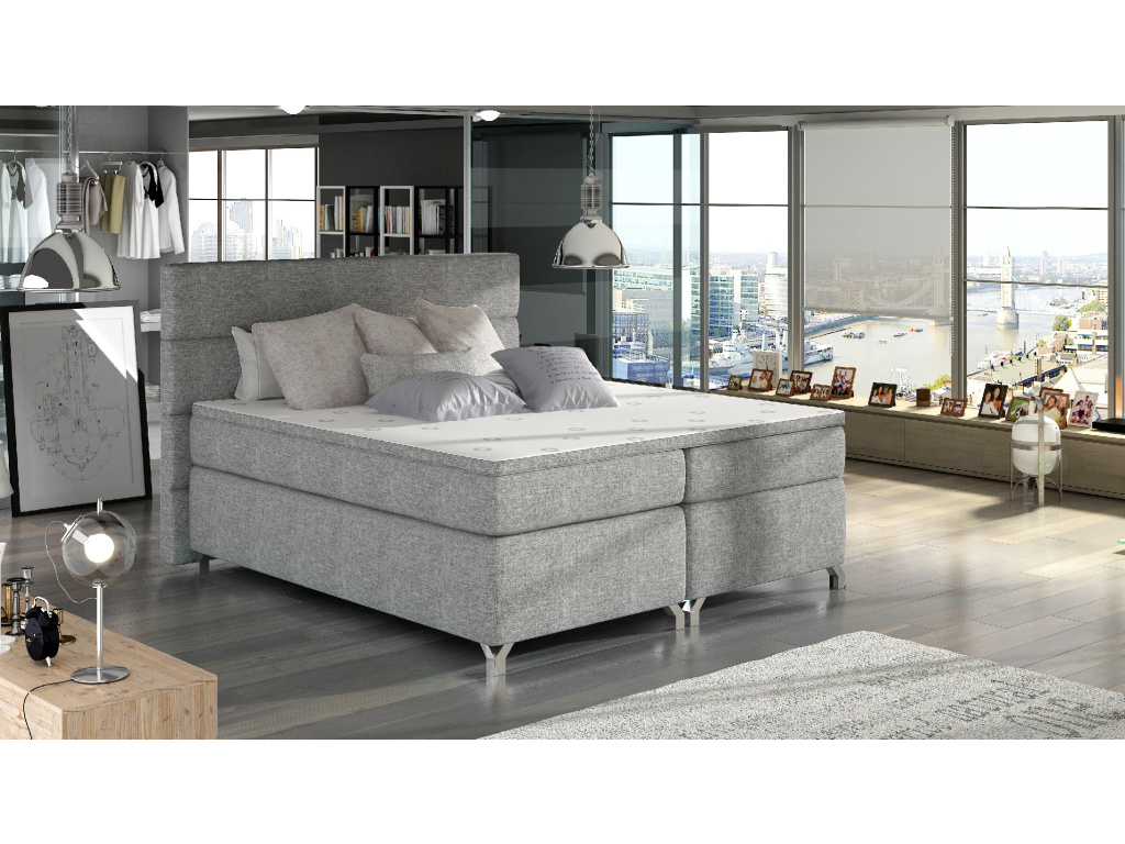 Amadeo je výjimečně pohodlná, robustní a designově originální postel typu boxspring, která zaujme svým neobvyklým tvarem a dalšími dekoracemi. Je k dispozici ve třech variantách 140/ 160 / 180 x 200 cm, takže ji můžete velmi snadno přizpůsobit metráži vašeho bytu. Mezi její vlastnosti patří: vysoká matrace, stylový podhlavník vybavený přídavnou pěnou T21, objemný úložný prostor na lůžkoviny, kovové chromované nožky a elegantní čalounění odolné proti oděru a znečištění, které je k dispozici v mnoha barvách z kolekce Eltap. Nejoriginálnějším dekorativním prvkem našeho nábytku je možnost vybavit jej LED osvětlením. Samotná matrace je vyrobena z bonelu, stejně jako dvě další vrstvy pěny T25 umístěné v horní a spodní části matrace. Výplň lůžka byla navíc zpevněna 4 cm silnou vrchní vrstvou z pěny T21. Díky tomuto řešení je maximálně pohodlná. Stojí za to mít takový funkční kus nábytku ve svém bytě.