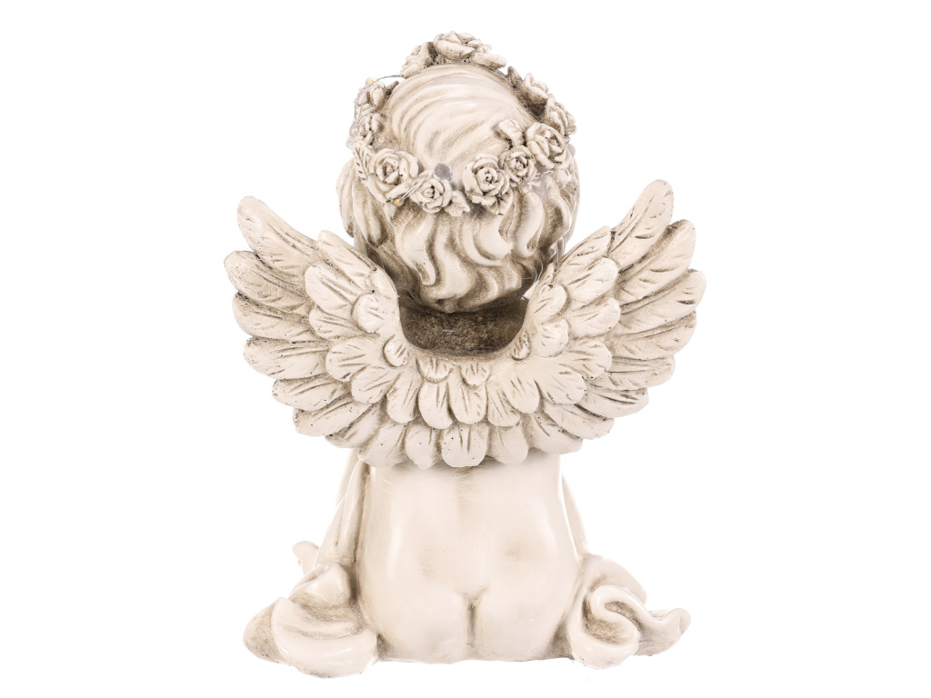 Pietní andílek z polyresinu v jemném světle šedém tónu vyzařuje klid a něhu. Sedící postavička s jemnými detaily působí jako ochránce vzpomínek a symbol míru. Uvnitř má zabudované LED osvětlení, které po rozsvícení dodává dekoraci hřejivý nádech a vytváří poklidnou atmosféru.Doplňkové parametry