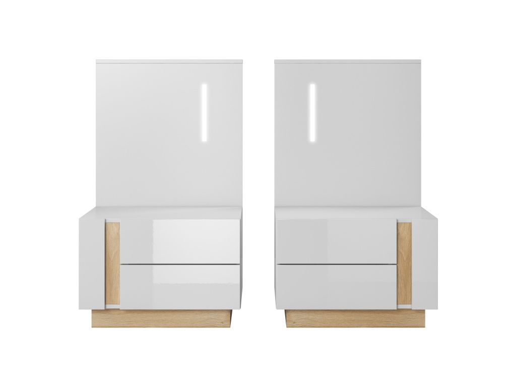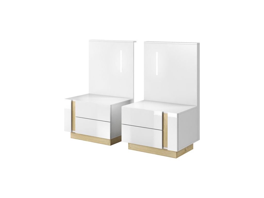 Představujeme vám noční stolky Arco, které se stávají nezbytnou součástí každé moderní ložnice. Tato stylová dvojice výrazně zvýší komfort a funkčnost vašeho prostoru, aniž by jakkoli narušovala jeho estetiku. Stolky Arco jsou vyrobeny z kvalitních materiálů, které zdůrazňují jejich moderní design. Dekor bílý lesk/dub Grandson nebo dub Artisan/grafit dodávají stolkům příjemný kontrast a zároveň je snadno kombinovatelnou s jakýmkoli interiérem. Matný povrch dodává těmto stolkům jedinečného a elegantního vzhledu.