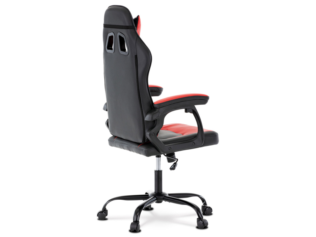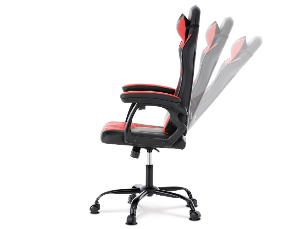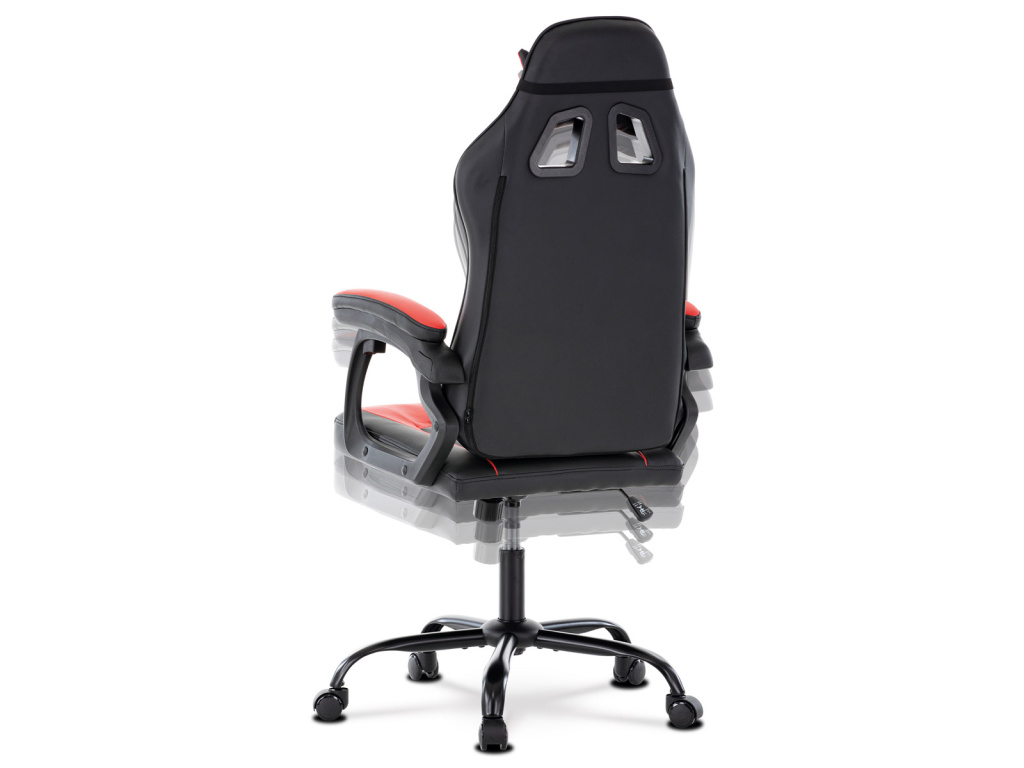 Herní křeslo, červená a černá ekokůže, houpací mech., opěrák 135° - KA-L626 RED
