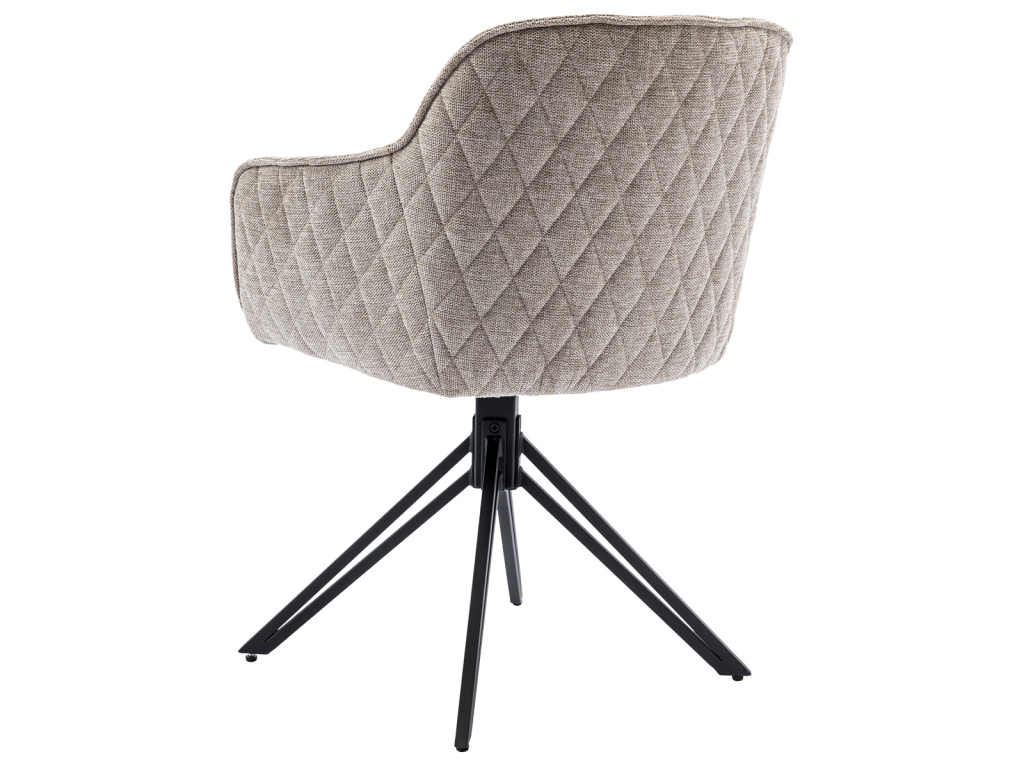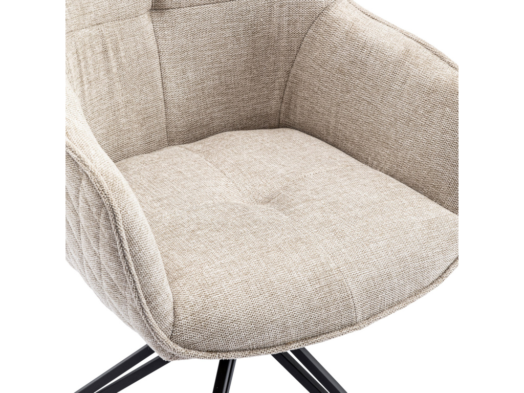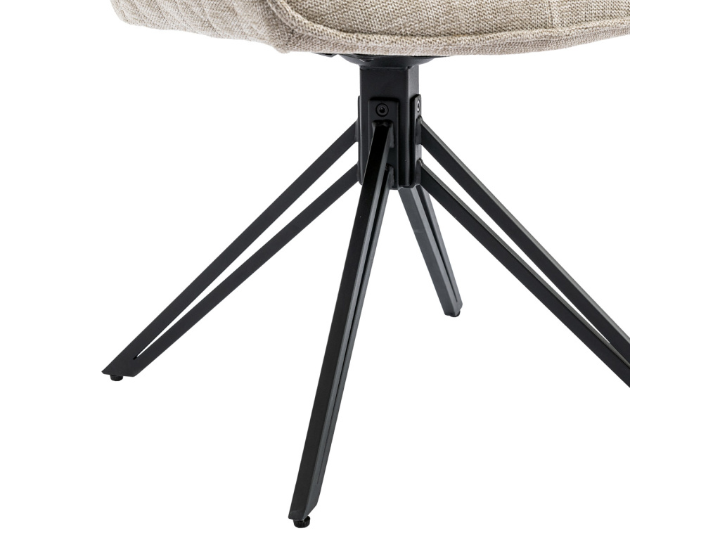 Jídelní a konferenční židle skořepinové konstrukce v zajímavém designu a ve velmi žádaném industriálním / loft stylu. Konstrukce sedáku i opěradla má pevnou kovovou kostru, potah je z jemně hrubé látky v béžovém odstínu. Polstrování je z pevné PU pěny, na sedáku v hustotě 28 kg/m3 a na opěradle 24 kg/m3. K pohodlí posedu poslouží nejen bohaté polstrování, ale i praktické a pohodlné opěrky rukou. Příjemný dekorativní prvky tvoří centrální čalounický vtah na opěradle a z vnější strany kosočtvercové prošívání. Nedílnou součástí je široká látková paspule v barvě židle, lemující celý obvod. Stabilitu zajišťuje designovaná čtyřnohá podnož s centrálním uchycením skořepiny. Konstrukce jednotlivých paprsků nohou je čtvercového průřezu, odlehčena středovým průzorem. Povrchová úprava je kvalitním práškovým nástřikem v černé matné barvě. Podnož židle je rektifikovatelná, na každém paprsku nohy je výškově nastavitelný kluzák s plastovým krytem. Ten zamezí možnosti poškození tvrdých podlah. Tento model je dobrou volbou pro Váš výběr do jídelních nebo obývacích prostor, hodí se i jako konferenční židle, kde ale musíte oželit možnosti jejího otáčení. Nosnost je do 120 kg, Základní rozměry – celková šíře 57 cm, celková hloubka 58 cm, celková výška 84 cm a výška sedu 50 cm. Montáž není složitá, zvládne ji i méně zručný nový majitel této židle.Doplňkové parametry