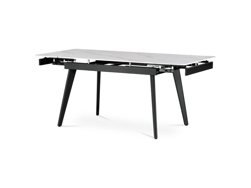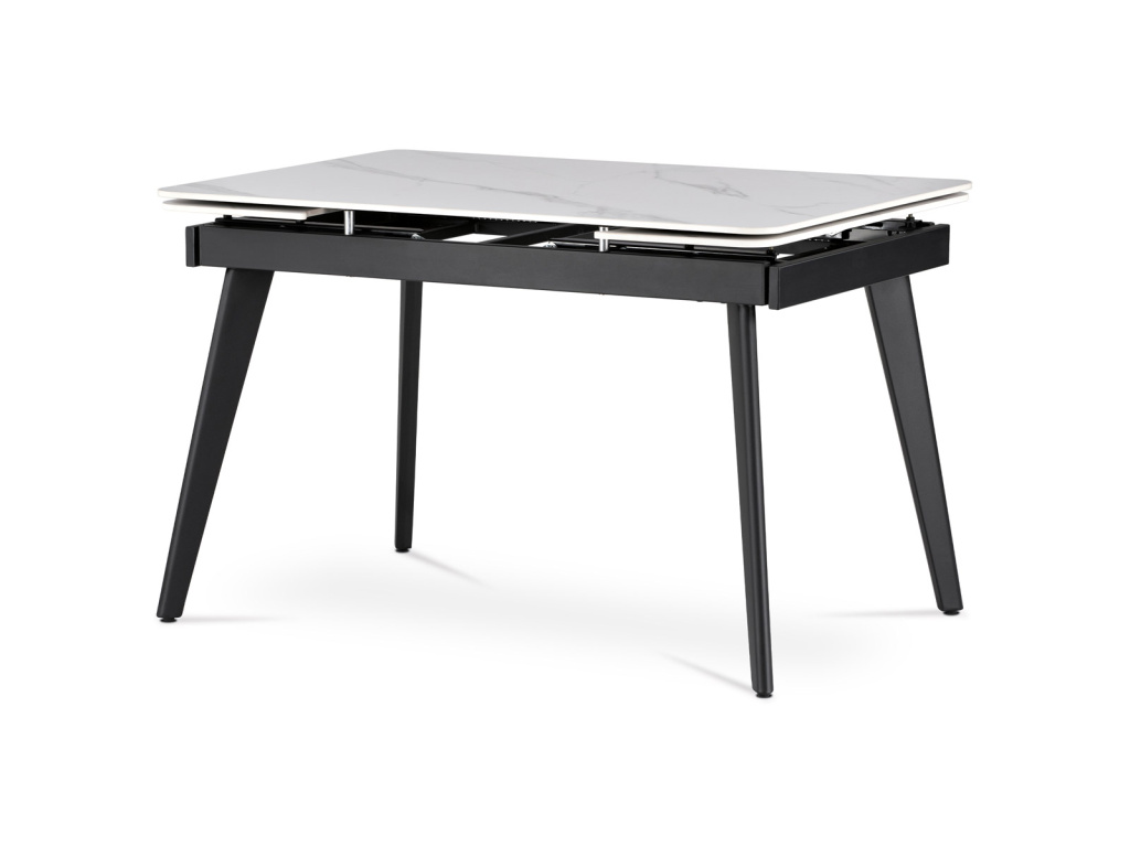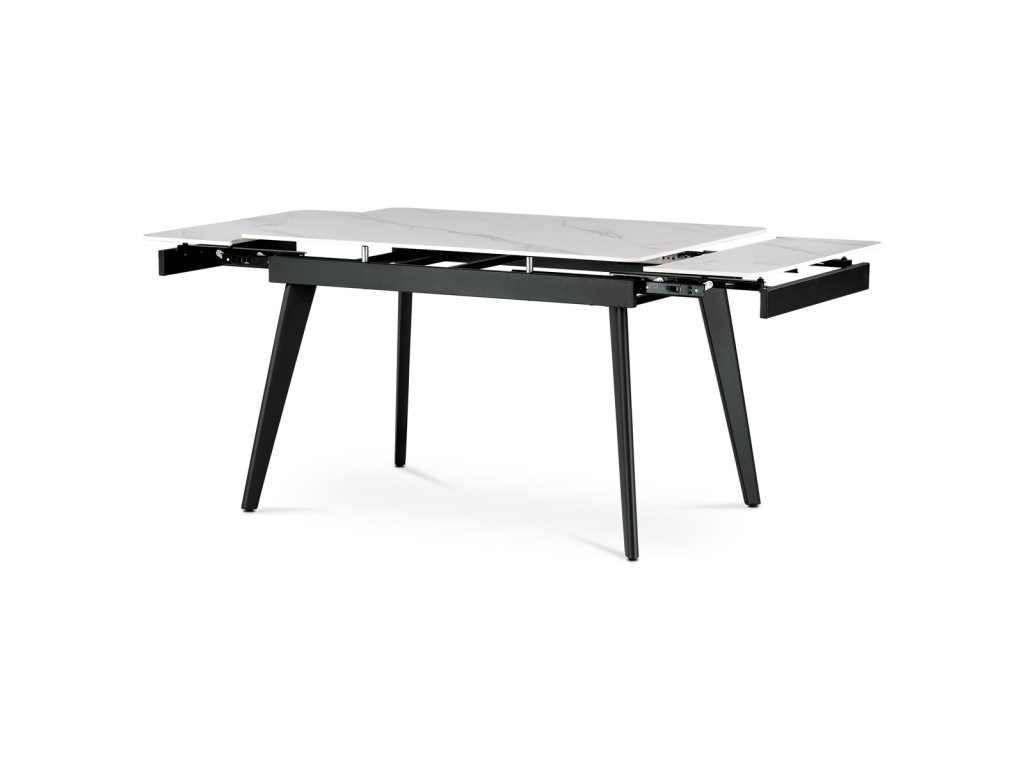 Jídelní stůl 120+30+30x80 cm, keramická deska bílý mramor, kov, černý matný lak - HT-405M WT
