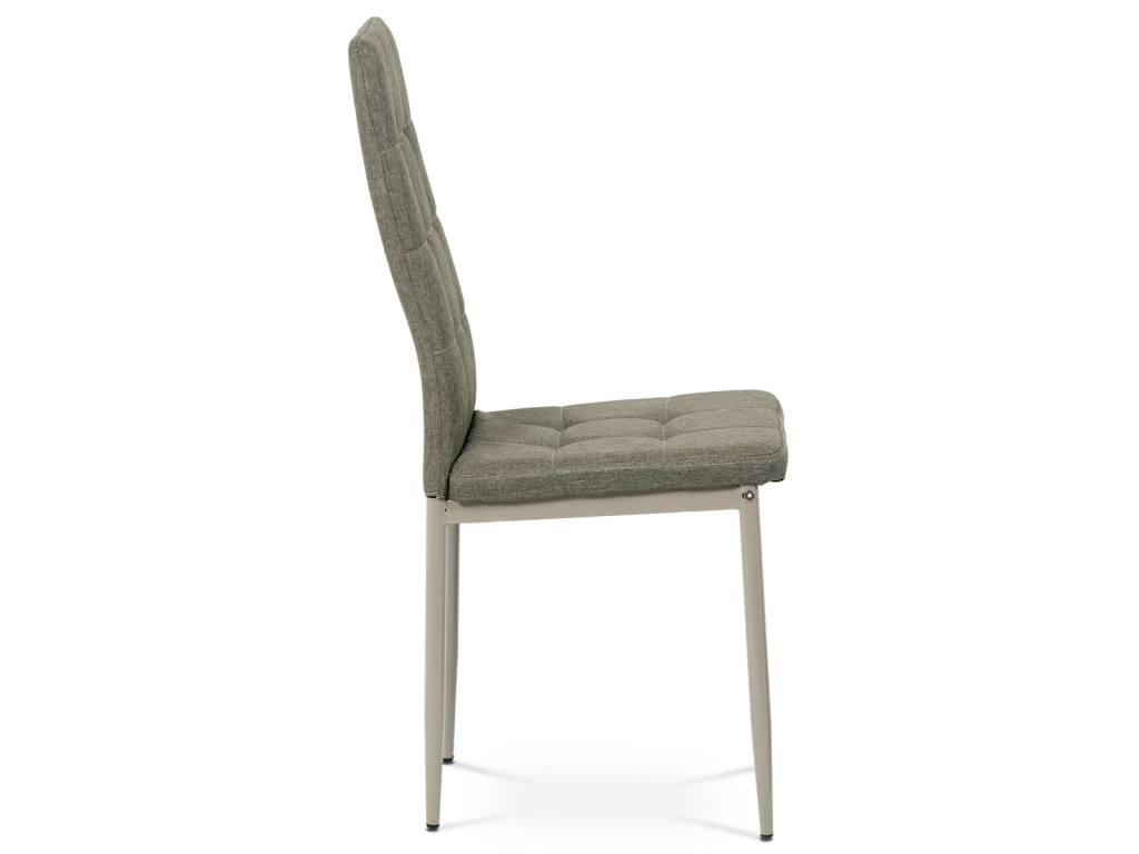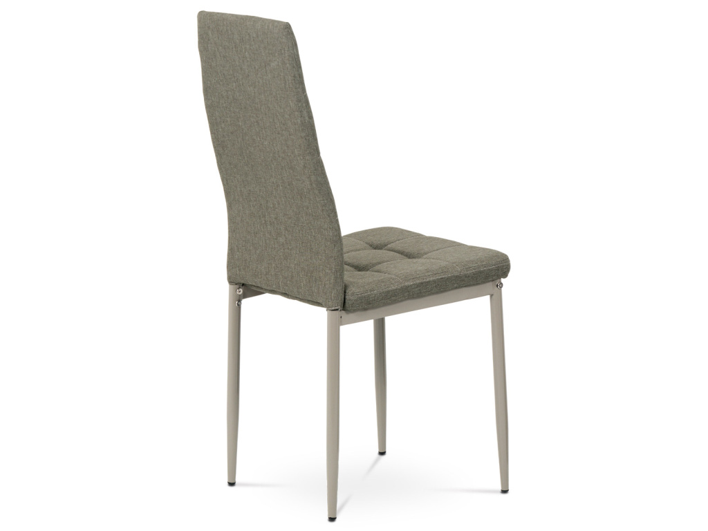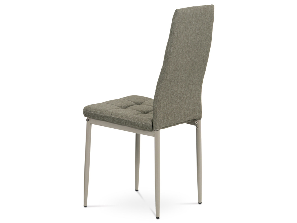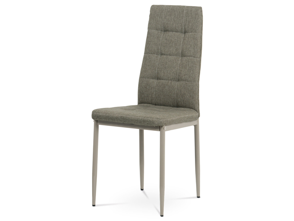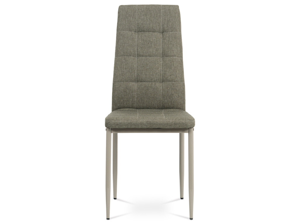 Jídelní židle v industriálním stylu a minimalistickém designu. Je potažena středně hrubou látkou v trendy odstínu dark cappuccino s výrazným čtvercovým prošitím s čalounickými vtahy sedáku i opěráku. Polstrování je z kvalitní PU pěny. Čtyřnohá podnož je kovová, s povrchovou úpravou cappuccino matnou práškovou barvou. Nohy jsou kruhového průřezu a kónické, na koncích jsou opatřeny černými plastovými kluzáky, které minimalizují nebezpečí poškození povrchu podlahy na minimum. Nosnost židle je až 110 kg. Tato židle najde platné využití v prostorách domácí jídelny či kuchyně.Doplňkové parametry