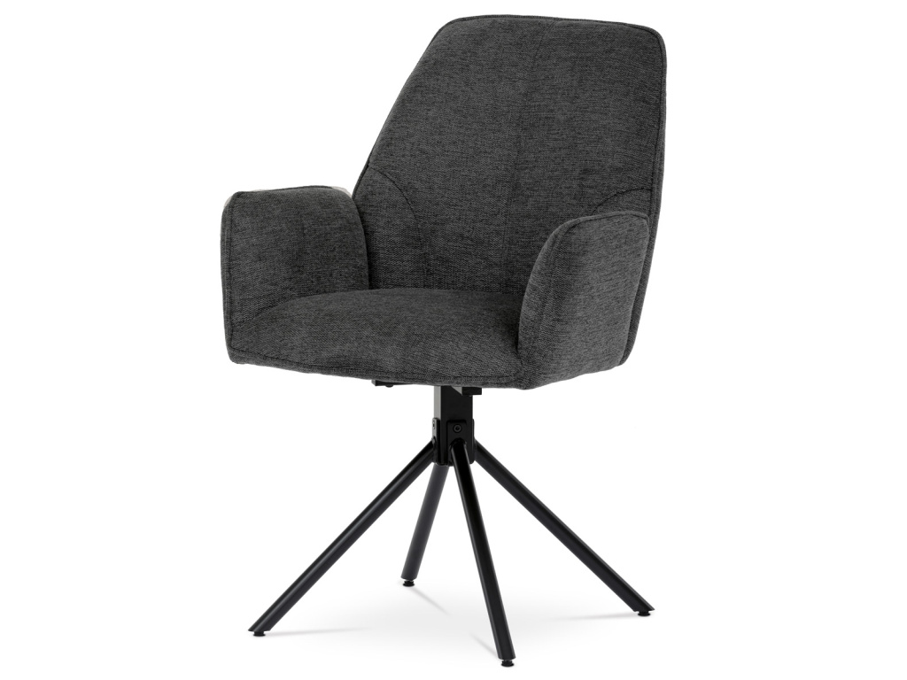 Jídelní židle v šedé látce s područkami, otočná s vratným mechanismem - funkce reset, kovové podnoží v černé barvě - HC-522 GREY2