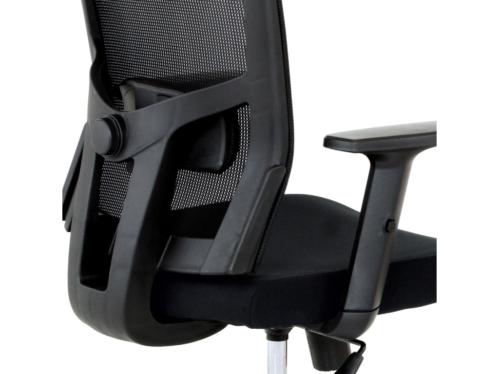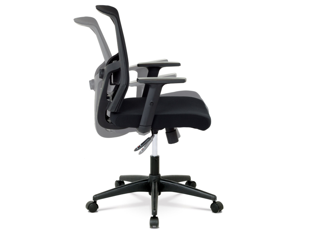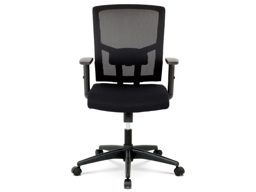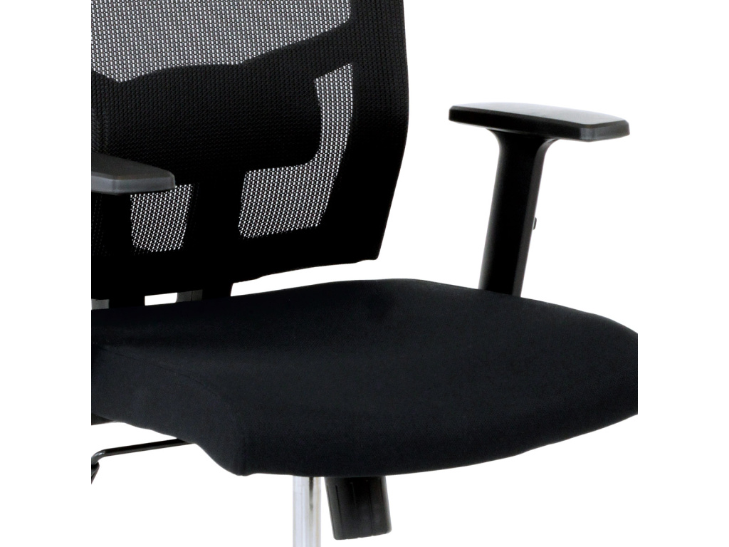 Kancelářská židle s výškově nastavitelnými područkami, pasivní bederní opěrkou a plastovým křížem s plastovými kolečky vhodnými na koberce. Opěrák je potažen síťovinou a sedák je očalouněn černou látkou. Židle je výškově nastavitelná s houpacím mechanismem. Nosnost židle je až 120 kg.Doplňkové parametry