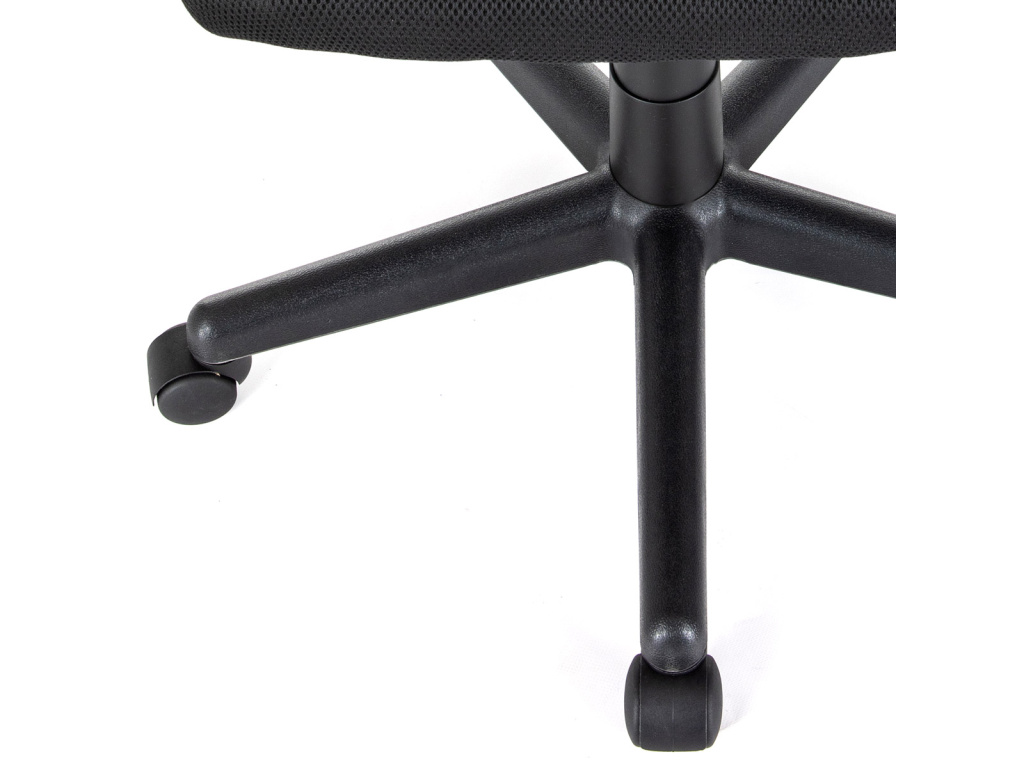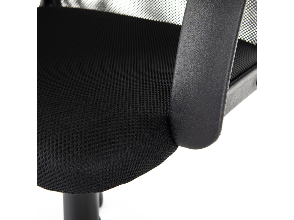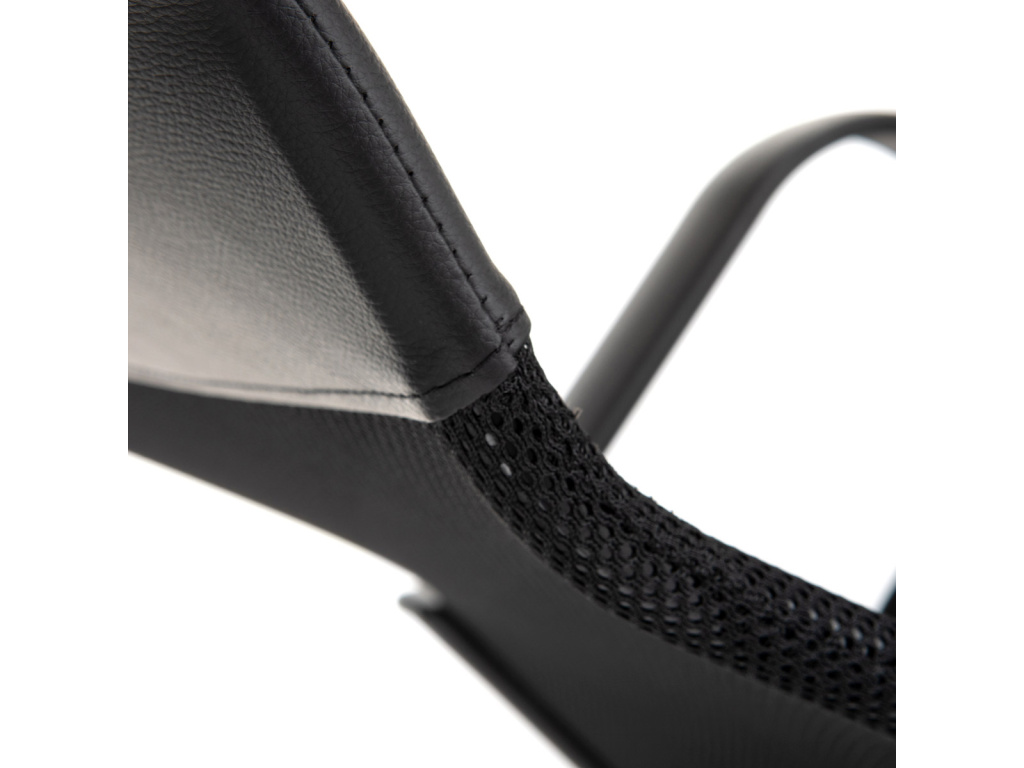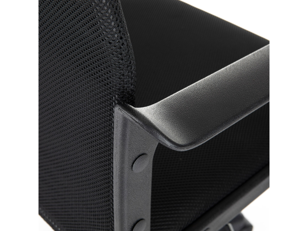 Oblíbená a nadčasová kancelářská židle decentní černé barvy je vhodná nejen do kanceláří, ale například i pro Home office. Vysoký trubkový opěrák s bederní opěrkou je potažen černou síťovinou MESH a v horní části jako podhlavník slouží velmi praktický potah z černé ekokůže. Použité materiály na sedáku i zádové části opěráku zaručují dokonalou prodyšnost. Příjemný polstrovaný sedák je potažený černou látkou MESH. Výplň je v kvalitní PU pěny, která zaručuje příjemné dlouhodobé sezení. Ruce si můžete pohodlně opřít o 6 cm široké černé plastové područky s velkou ložnou plochou 35 cm. Područky zároveň slouží jako velmi pevné spojovací díly sedáku s opěrákem. Díky kvalitnímu plynovému pístu je židle výškově nastavitelná, vybavená houpacím mechanismem a velkým aretačním šroubem na úpravu tuhosti pohupu, který je umístěn pod sedákem. Správnou stabilitu a pevnost zajišťuje pětiramenný černý plastový kříž o pr. 60 cm s plastovými kolečky vhodnými na koberce. Nosnost židle je až 120 kg.Doplňkové parametry