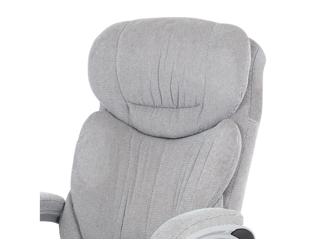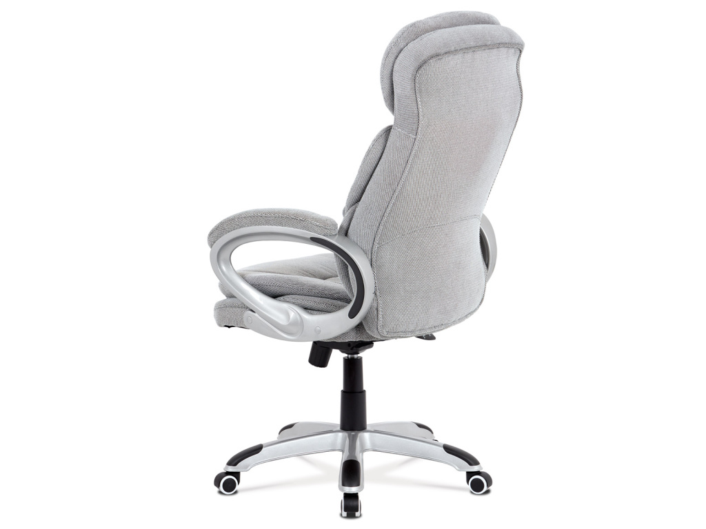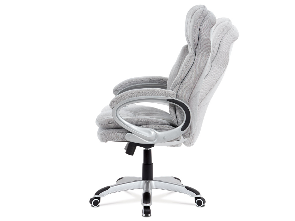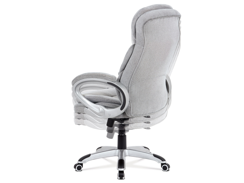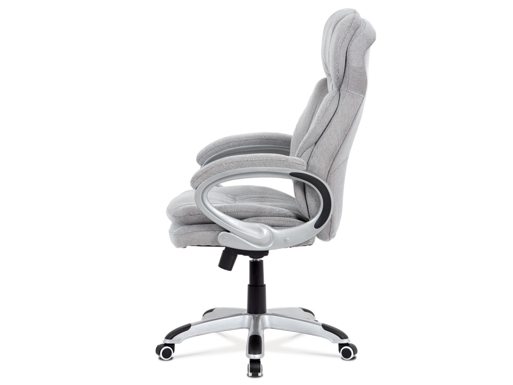 Moderní kancelářská židle potažená pololesklou šedostříbrnou látkou vzor pepito. Díky ultra pohodlnému sedáku a opěráku s výjimečným polstrováním, které jsou stylově tvarované, s elegantním prošitím a se super měkkým podhlavníkem se budete cítit jako v business class nejlepší letecké společnosti. Ruce si můžete pohodlně opřít o pevné plastové područky stříbrné barvy s černými plastovými doplňky a polstrováním potaženým extra jemnou látkou. Židle má také i snadno omyvatelný, tvrzený, plastový kříž stříbrné barvy s černými protiskluzovými prvky a plastovými kolečky vhodnými na tvrdé typy podlah (dlažba, parkety, plovoucí podlahy apod.). Je výškově nastavitelná, s houpacím mechanismem a předním šroubem upravujícím tuhost pohupu a její nosnost je až 120 kg. Látku čistit výhradně šamponováním běžnými čistícími prostředky za použití měkkého materiálu (houbička, hadřík). Nečistit hrubými materiály (kartáč, apod.). Nikdy nepoužívat chemická rozpouštědla. Látku nevystavujte přímému slunečnímu záření. Veškeré nečistoty je třeba odstraňovat ihned po ušpinění. Pozdním čištěním se úspěšnost zákroku výrazně snižuje. Látku nevystavujte přímému slunečnímu záření.Doplňkové parametry