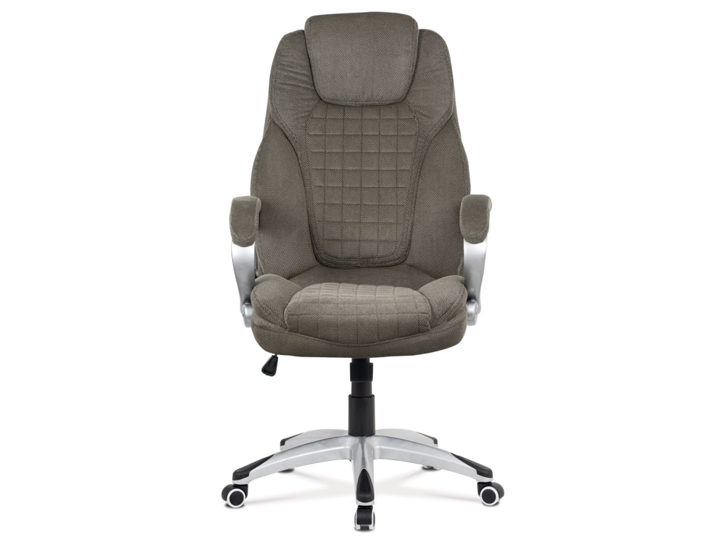 Moderní kancelářská židle potažená pololesklou šedou látkou vzor pepito. Díky ultra pohodlnému sedáku a opěráku s výjimečným polstrováním, které jsou stylově tvarované, s elegantním prošitím a se super měkkým podhlavníkem se budete cítit jako v business class nejlepší letecké společnosti. Ruce si můžete pohodlně opřít o pevné plastové područky šedé barvy s černými plastovými doplňky a polstrováním potaženým extra jemnou látkou. Židle má také i snadno omyvatelný, tvrzený, plastový kříž stříbrné barvy s černými protiskluzovými prvky a plastovými kolečky vhodnými na tvrdé typy podlah (dlažba, parkety, plovoucí podlahy apod.). Je výškově nastavitelná, s houpacím mechanismem a předním šroubem upravujícím tuhost pohupu a její nosnost je až 120 kg. Látku čistit výhradně šamponováním běžnými čistícími prostředky za použití měkkého materiálu (houbička, hadřík). Nečistit hrubými materiály (kartáč, apod.). Nikdy nepoužívat chemická rozpouštědla. Látku nevystavujte přímému slunečnímu záření. Veškeré nečistoty je třeba odstraňovat ihned po ušpinění. Pozdním čištěním se úspěšnost zákroku výrazně snižuje. Látku nevystavujte přímému slunečnímu záření.Doplňkové parametry