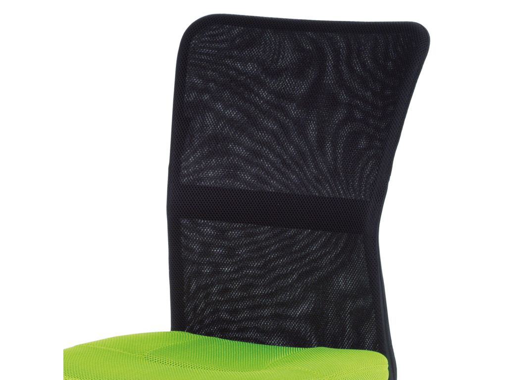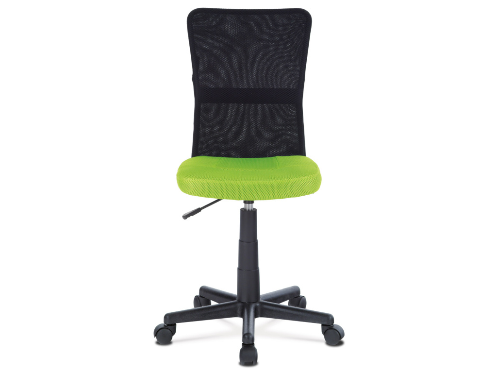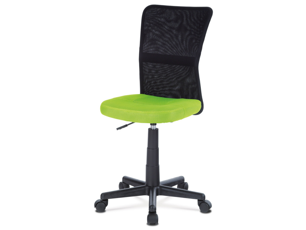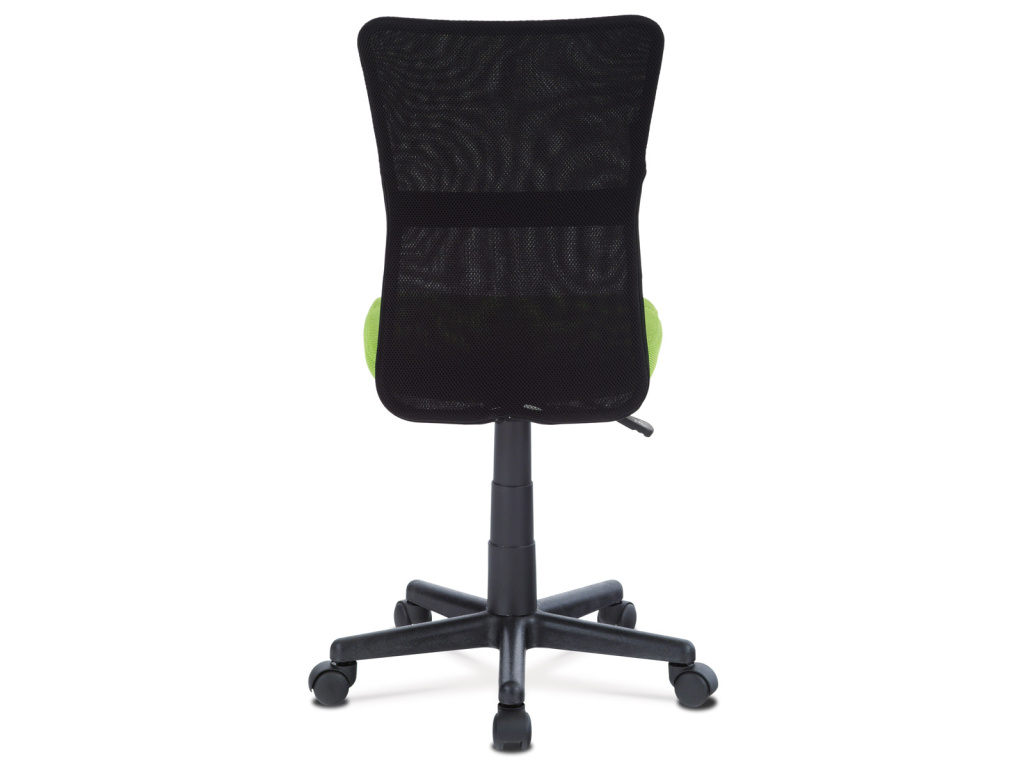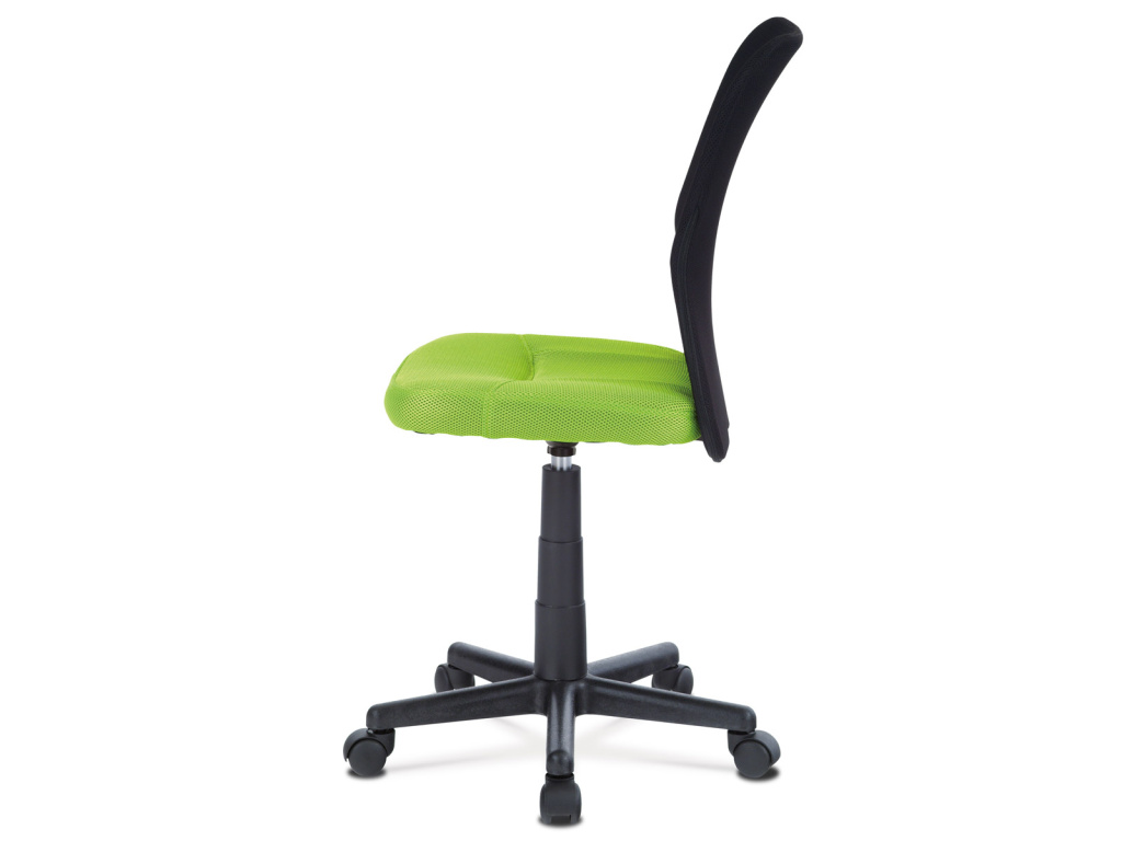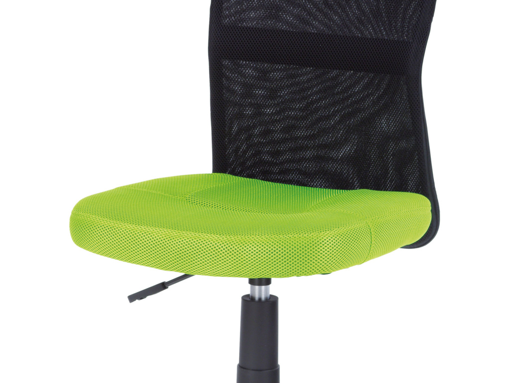 Dětská kancelářská židle čalouněná látkou MESH ve stylové kombinaci zelené a černé barvy. Díky plynovému pístu je židle výškově nastavitelná. Židle má také plastový kříž s plastovými kolečky vhodnými na koberce. Nosnost 60 kg.Doplňkové parametry