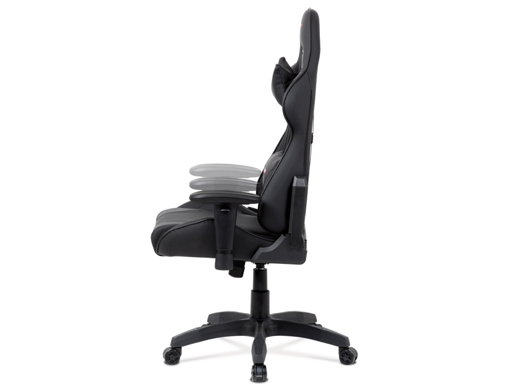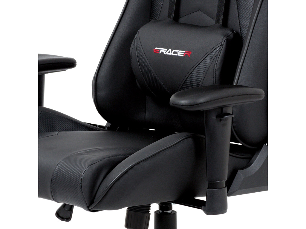 Kancelářská židle v provedení černá ekokůže s detaily v dekoru "CARBON", univerzální (pogumovaná) kolečka, plastový kříž, výškově nastavitelné područky, polohovatelný opěrák až do polohy 180°, houpací mechanismus s možností nastavení tuhosti dle váhy uživatele. Součástí židle jsou 2 odnímatelné polštářky.Doplňkové parametry