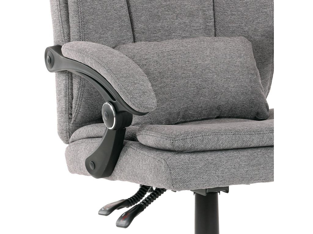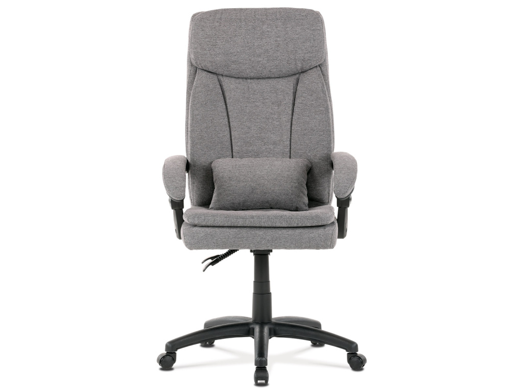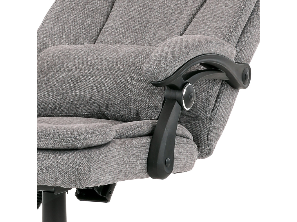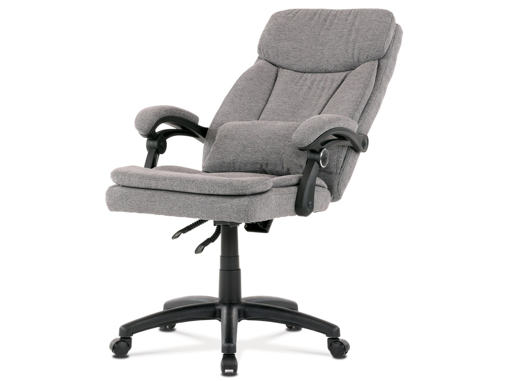 Luxusní kancelářské křeslo z kolekce TOP manager. Jedná se o moderní designové křeslo, navržené pro náročnou kancelářskou práci. A to v maximálním pohodlí a při dokonalé ergonomii sezení. Potah je šedé středně hrubé látky. Výplň dvojitého sedáku i vysokého opěráku je z velmi kvalitní PU pěny. Křeslo je vybaveno permanent contact mechanismem s plynulou aretací. Při vypnutí je možné se s opěradlem volně pohupovat. Výška sezení se upravuje jednou páčkou na pravé straně přes kvalitní plynový píst. Poloha opěráku se nastavuje druhou páčkou, umístěnou rovněž na pravé straně křesla. Černý plastový kříž o průměru 70 cm je osazen černými plastovými kolečky, určenými na koberce. Vysoký, částečně prodyšný a ergonomicky navržený dvojitý opěrák s integrovanou opěrkou hlavy, slouží nejen jako výborná opora celých zad a také podporuje správné držení páteře. K tomu přispívá i malý bederní polštářek. Područky jsou plastové, polstrované a potažené šedou látkou. Šíře je 8 cm, délka ložné plochy je úžasných 38 cm a výška 3 cm. Při sklápění sedáku se pohybují a kopírují jeho pohyb a polohu. Vaše ruce budou mít při odpočinku dokonalou a měkkou podporu. Nosnost židle je až 130 kg. Toto kancelářské křeslo je skvělou volbou na pohodlí, relax a v interiéru ho rozhodně nepřehlédnete. Kvalita zpracování, důraz na pohodlí a ergonomii, to zaručuje pohodu při každodenní nebo i příležitostné kancelářské práci. Jistě rádi vyměníte vaše standardní křeslo za toto s jeho relax funkcemi.Doplňkové parametry