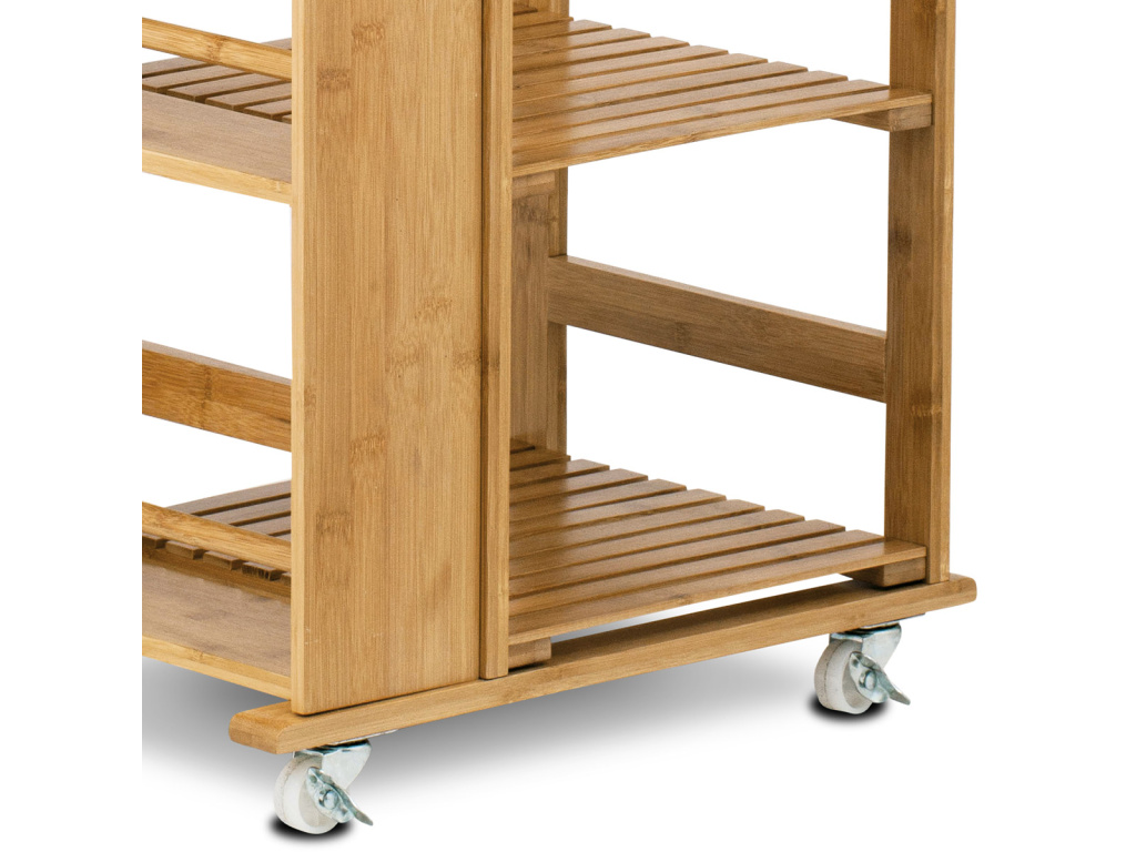 Servírovací stolek / regál, policový, masiv bambus, přírodní odstín, pojezd - DR-046