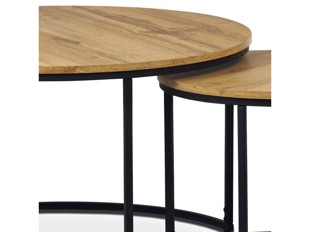 Set 2 ks stolků, MDF deska, dekor divoký dub, kovová podnož, černý lak - AF-3002 OAK
