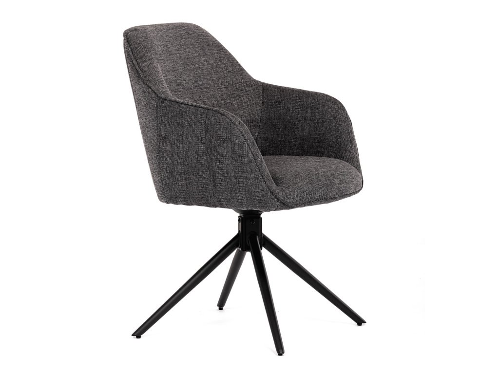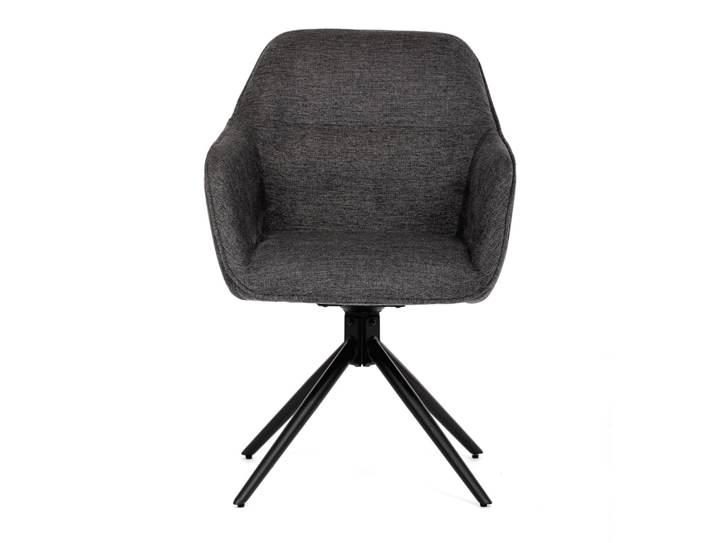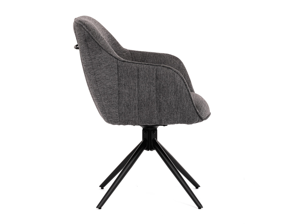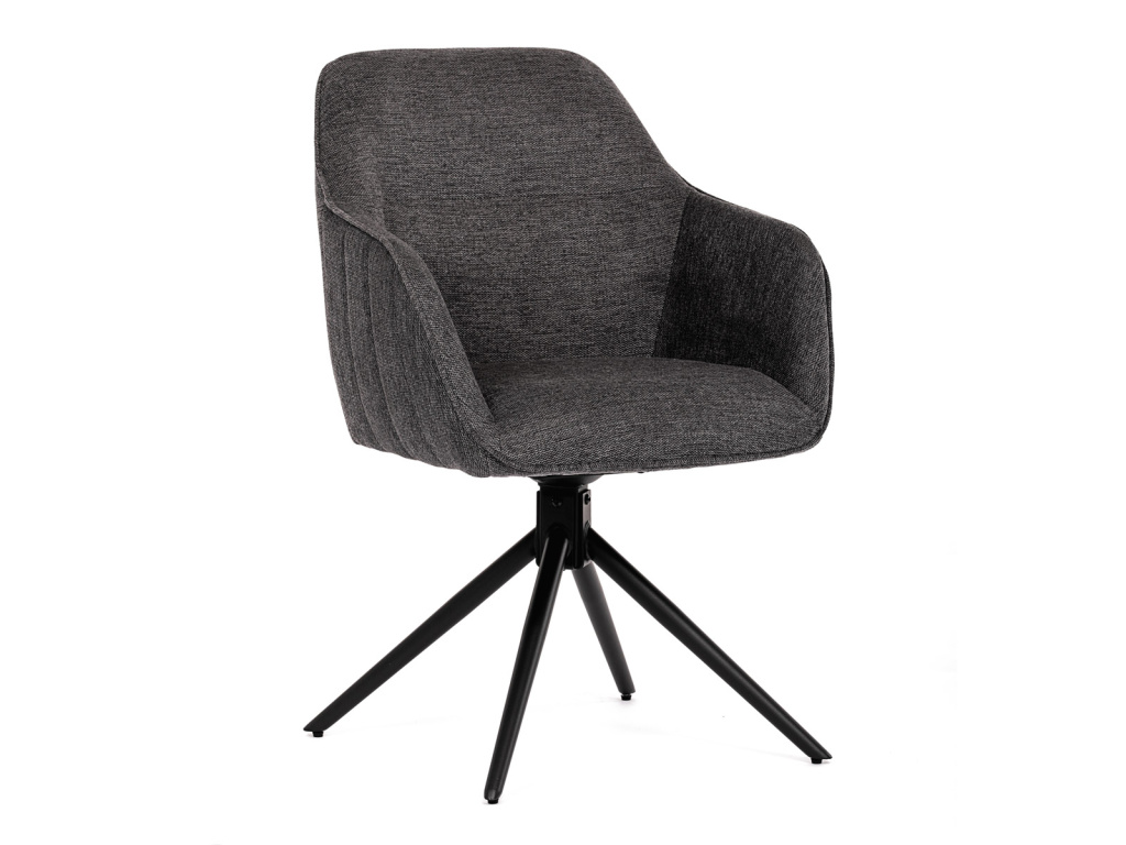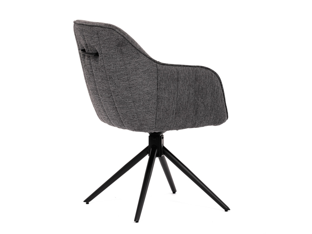 Moderní jídelní židle v šedé barvě s efektním prošitím zádové i přední části opěráku. Prošití je v brvě potahového materiálu. Zadní část opěráku je opatřena vkusným madlem pro snazší manipulaci. Čtyři kovové nohy v matném práškovém nástřiku vycházejí z centrálního bodu ve středu sedáku. Sedák je otočný o P90°+ L 90° s vratným mechanismem - funkce reset.Doplňkové parametry