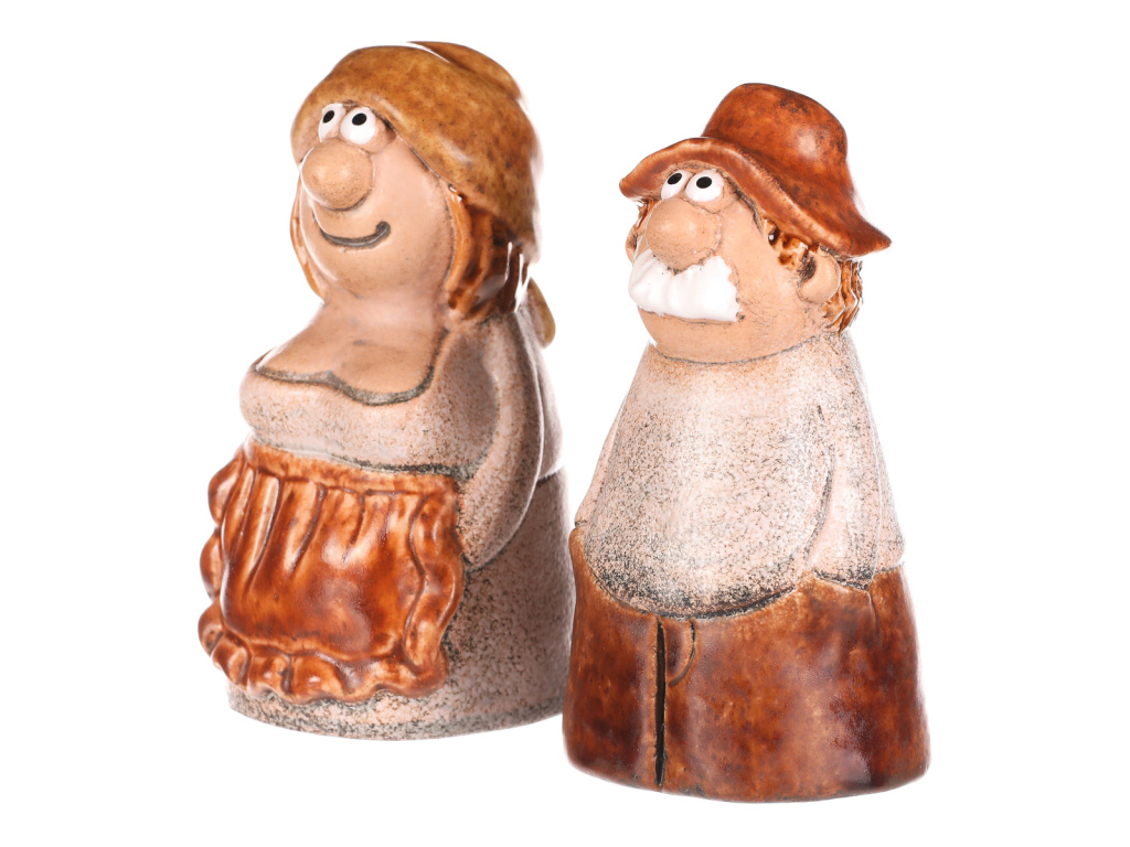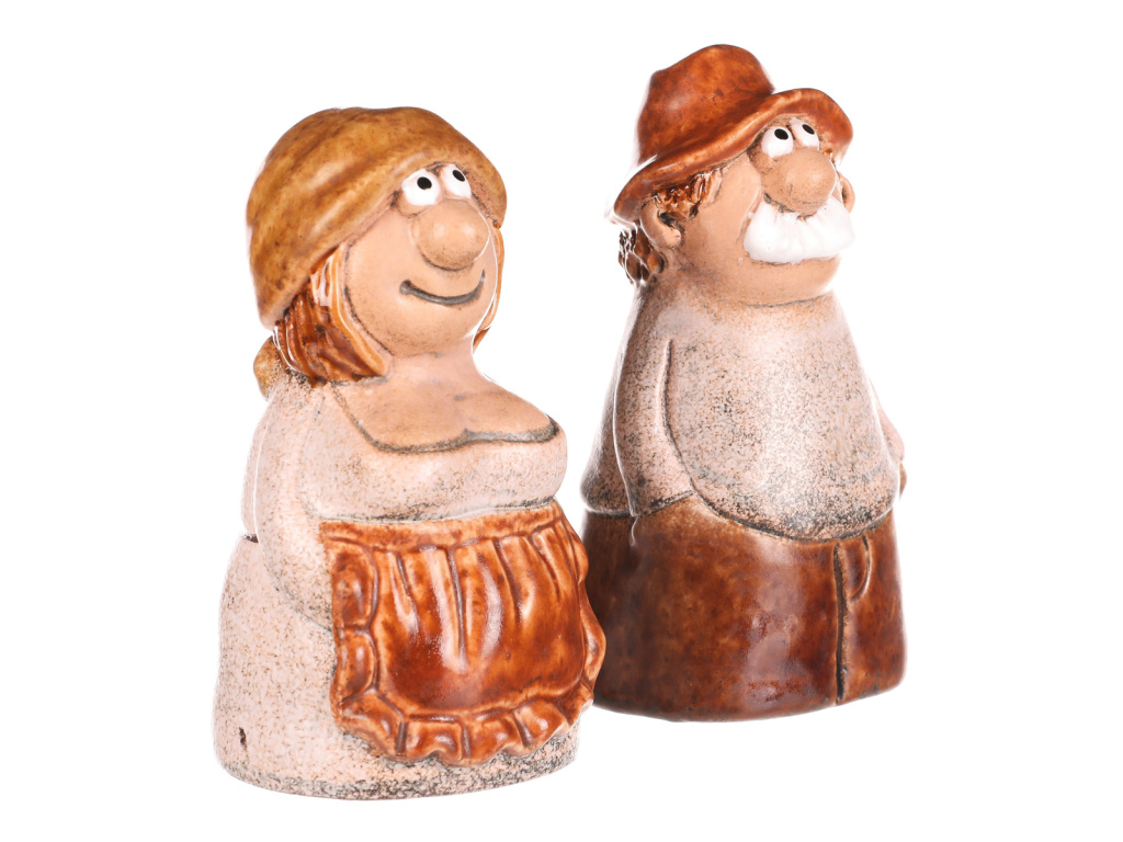 Keramická zahradní ozdoba, v podobě babky a dědka s vykulenýma očima a veselými výrazy, přináší do vaší zahrady spoustu radosti a potěšení. Rozdávají úsměvy každému, kdo kolem projde, a zaručeně oživí jakýkoli fádní kout. Skvělá varianta na plot, nebo jen tak na poličku, stůl či jiné dobře viditelné místo, kde potěší nejen vás, ale i všechny ostatní pozorovatele.Doplňkové parametry