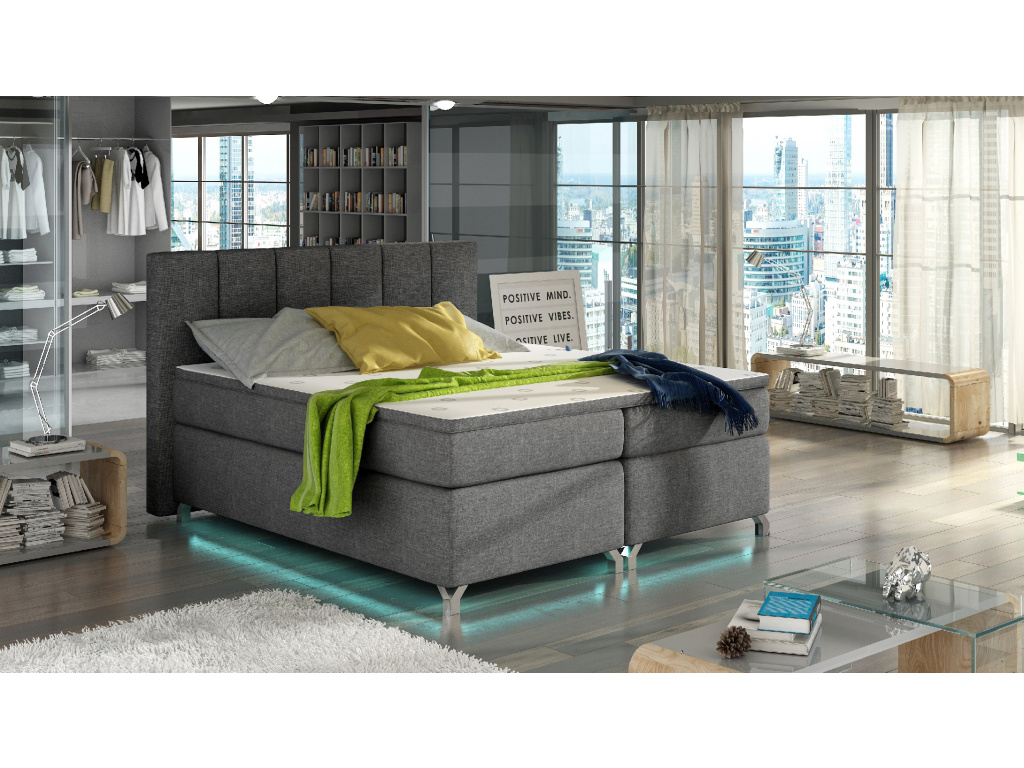 Basilio je nepostradatelným prvkem každé ložnice, který díky svému pohodlí a funkčnosti ovlivňuje nejen pohodlný spánek, ale také vizuální nastavení ložnice, jakoukoli plochu. Basilio je postel typu boxspring, která je k dispozici ve třech velikostech: 140/ 160/ 180 x 200 cm. Jednoduchá konstrukce kusu nábytku byla rozbita vysokým podhlavníkem, vyplněným pěnou T21, a také prostornou bonellovou matrací vysokou 20 cm. Má dvě vrstvy pěny T25, které jsou umístěny v horní a spodní části matrace, a také topper z pěny T21 o tloušťce 4 centimetry. Mezi vlastnosti modelu Basilio patří opěrka hlavy s prošíváním, objemný úložný prostor na lůžkoviny rozdělený na 3 části a také široká škála dostupných barev. Nejoriginálnějším dekorativním prvkem našeho nábytku je možnost vybavit jej LED osvětlením. Pokud vám záleží na maximálním pohodlí, správné poloze těla během spánku a jedinečné dekoraci místnosti, která rozzáří stávající interiér - Basilio bude jistě ideální volbou.