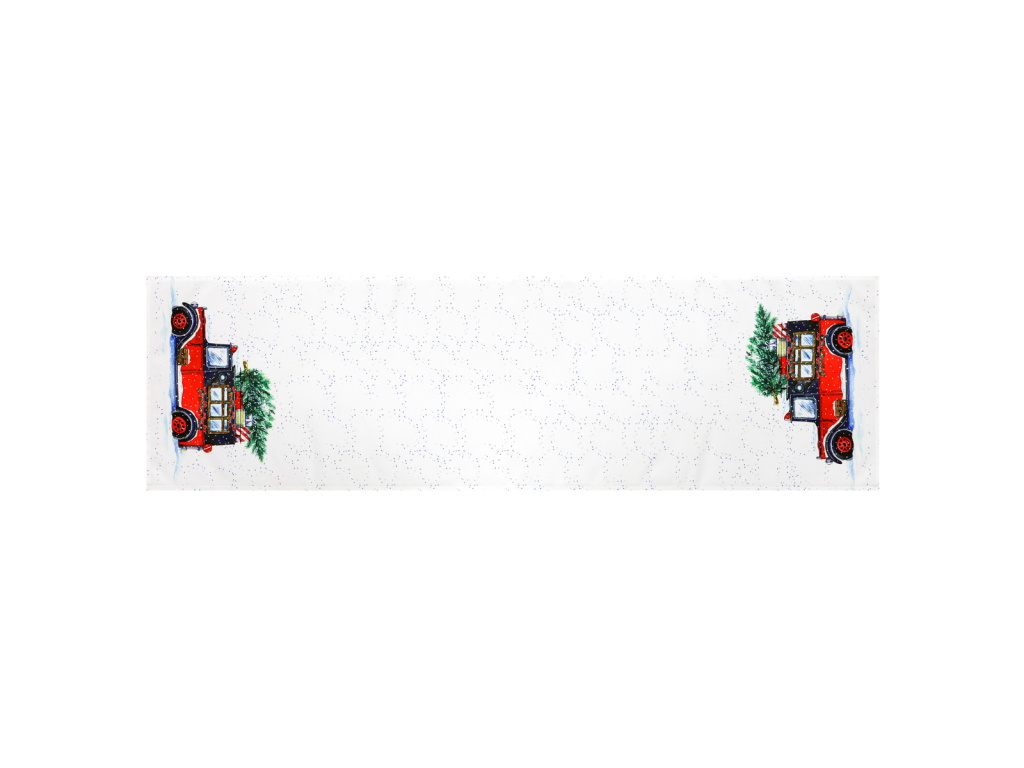 Běhoun bílý - okraje s vánočním autem, 100% polyester, 40 x 150 cm. - UBR100-2