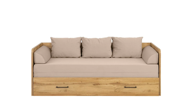 Místo klasické dětské postele zvolte model s čalouněným čelem nebo válendu s opěrkami. S kupou polštářů se z ní přes den stane skvělé místo pro návštěvy kamarádů.