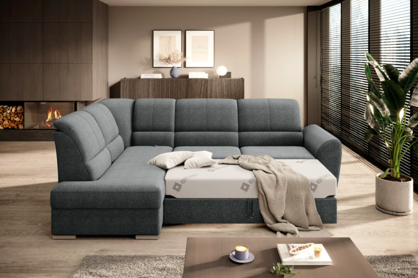 Rozkládací sedací souprava s úložným prostorem SENSO 1 s kompaktními rozměry 261 cm x 222 cm