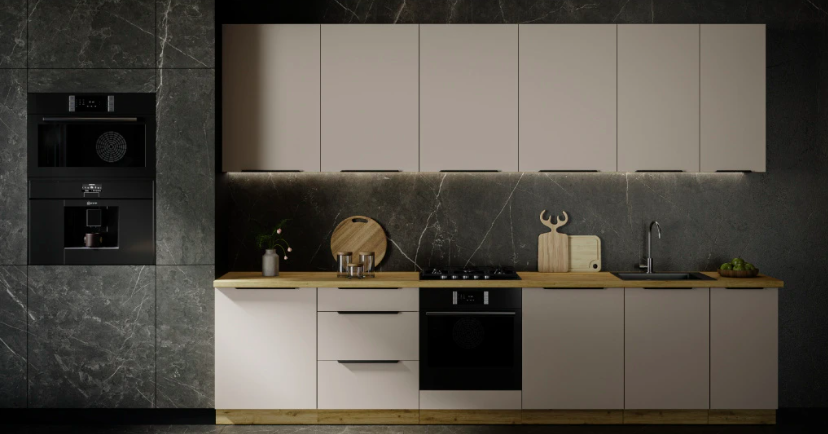 Rovná kuchyň je skvělá tam, kde chcete linku v jedné linii (typicky menší prostor nebo kuchyň v otevřeném bytě).
