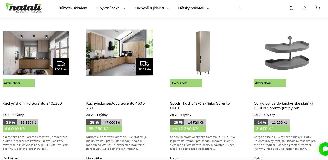 ➡️ Krok 3: Vyberete si řadu, která se vám líbí (my pro ukázku vybíráme kuchyně Sorento). V každé řadě naleznete jak hotové kuchyně, tak si zde můžete poskládat kuchyňskou linku dle vlastních preferencí.