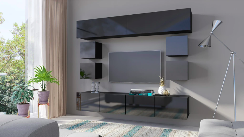 TV na stěně + závěsná TV skříňka: uvolní podlahu a zjednoduší úklid.