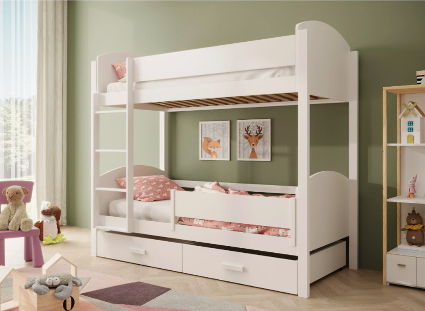 Chytré doplňky z e-shopu: dětské patrové postele/multifunkční postele, dětské psací stoly, úložné boxy na hračky, dětské knihovny a regály.