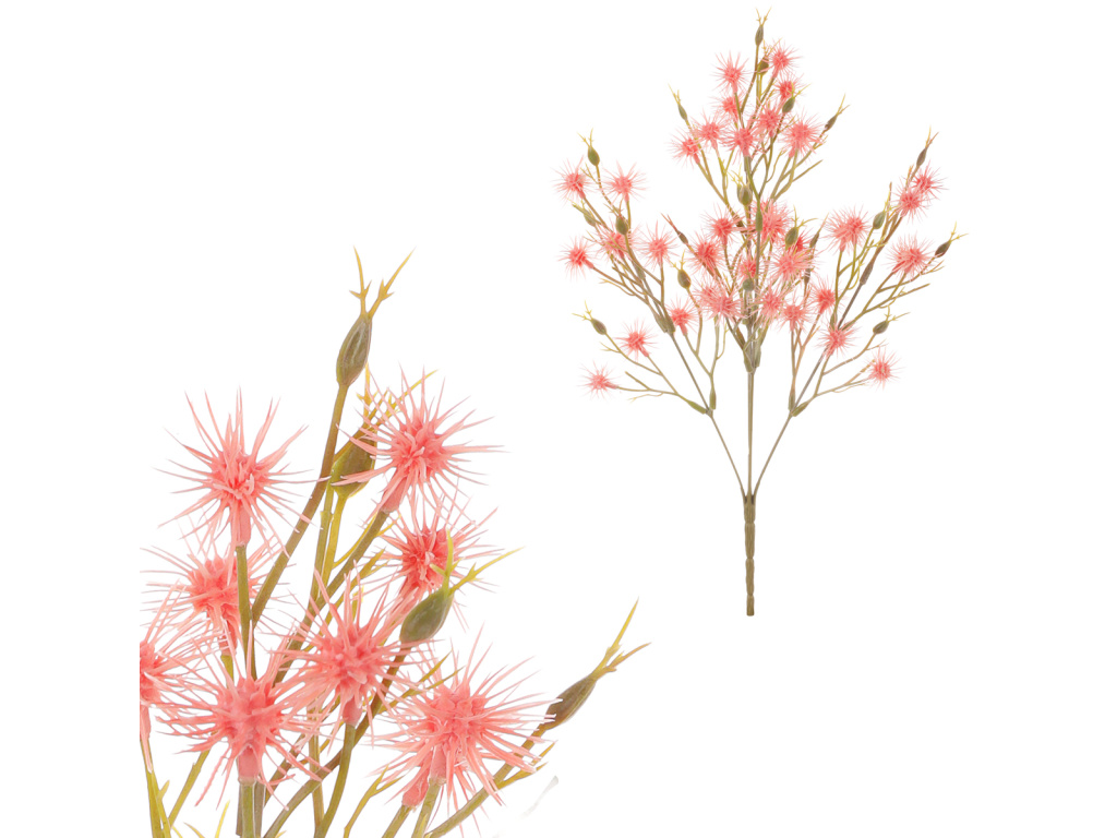 Kytice vytvořená z umělých bodláku s růžovými kvítky bude svým tvarem originálním a vysoce ceněným prvkem v rámci vaší květinové dekorace.Doplňkové parametry