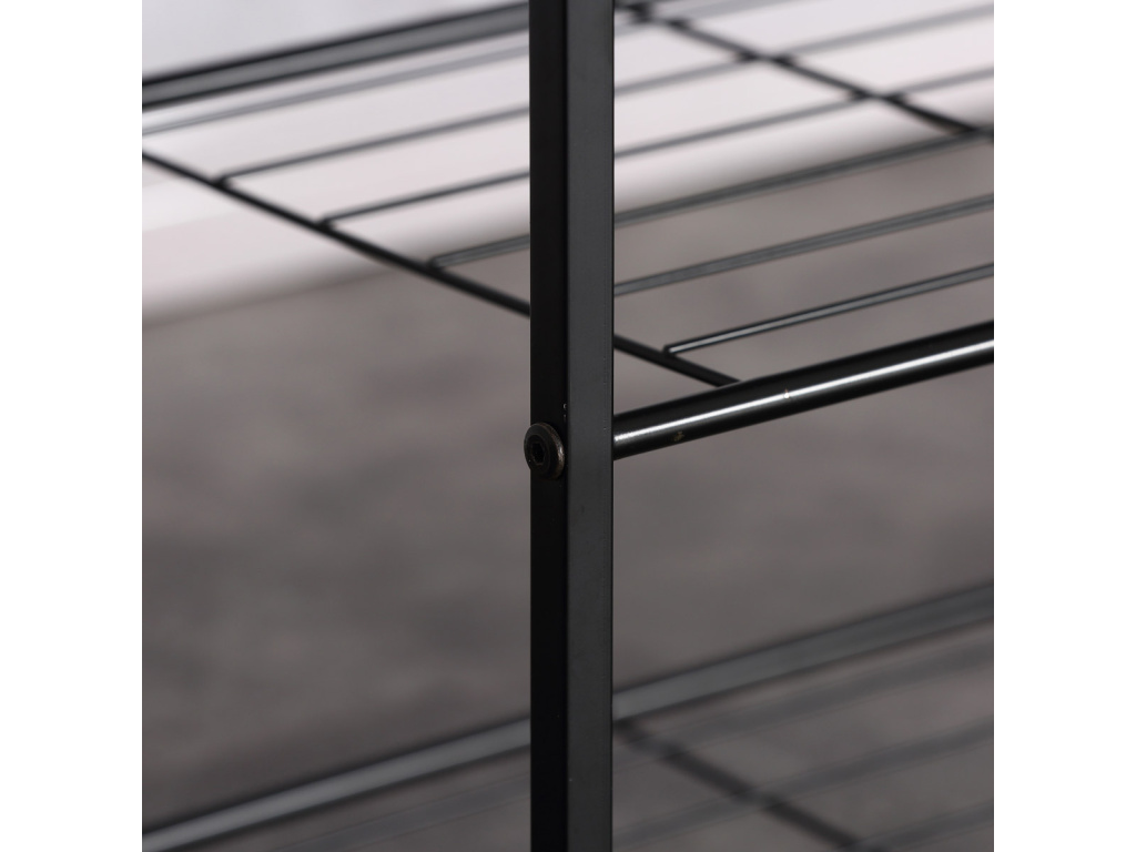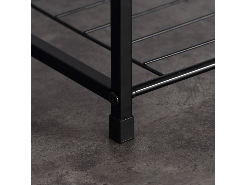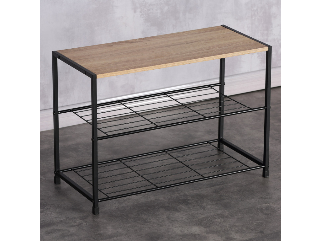 Botník s konstrukcí a odkládacími plochami z lehkého kovu v černé barvě. Půda je vyrobena z MDF desky s povrchovou úpravou 3D folie v odstínu dub sonoma.Doplňkové parametry