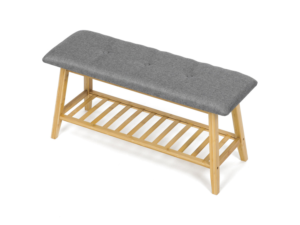 Botník / taburet, police, masiv bambus, přírodní odstín, šedá látka - DR-N1012 GREY2