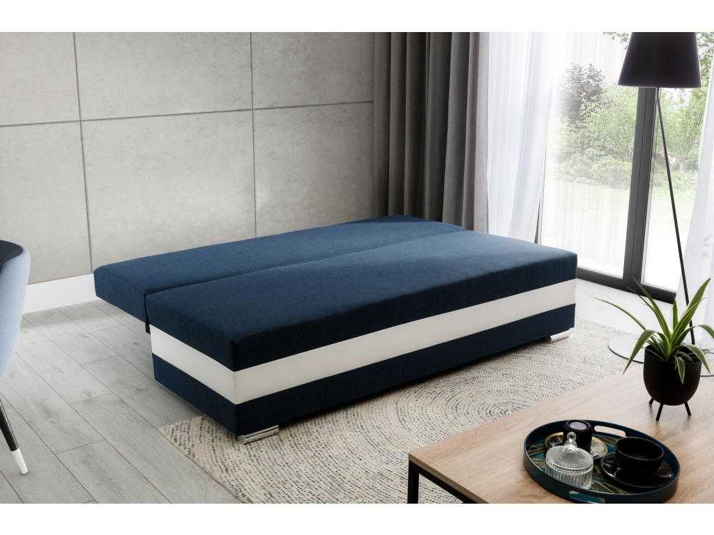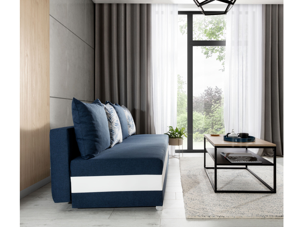Calia je jednoduchá a vkusná pohovka o rozměrech 195 x 91 x 83 cm, která je určena pro milovníky minimalistických povrchů. Je ideální pro odpočinek přes den i v noci, protože může mít podobu lůžka o rozměrech 195 x 134 cm. Za zmínku zde stojí také přítomnost prostorné nádoby na lůžkoviny, stejně jako dalších dekoračních polštářů. Náš kus nábytku je udržován v jednotném odstínu, který je prolomen širokým pruhem procházejícím spodní částí sedačky. Kromě designového provedení stojí za zmínku výplň naší pohovky, jejíž sedák je vybaven vlnitou pružinou a pěnou T25. Calia zaujme svou jednoduchostí a minimalismem s charakterem. Kombinuje maximální pohodlí s útulnými prvky, které budou dokonalou výplní každého bytu.