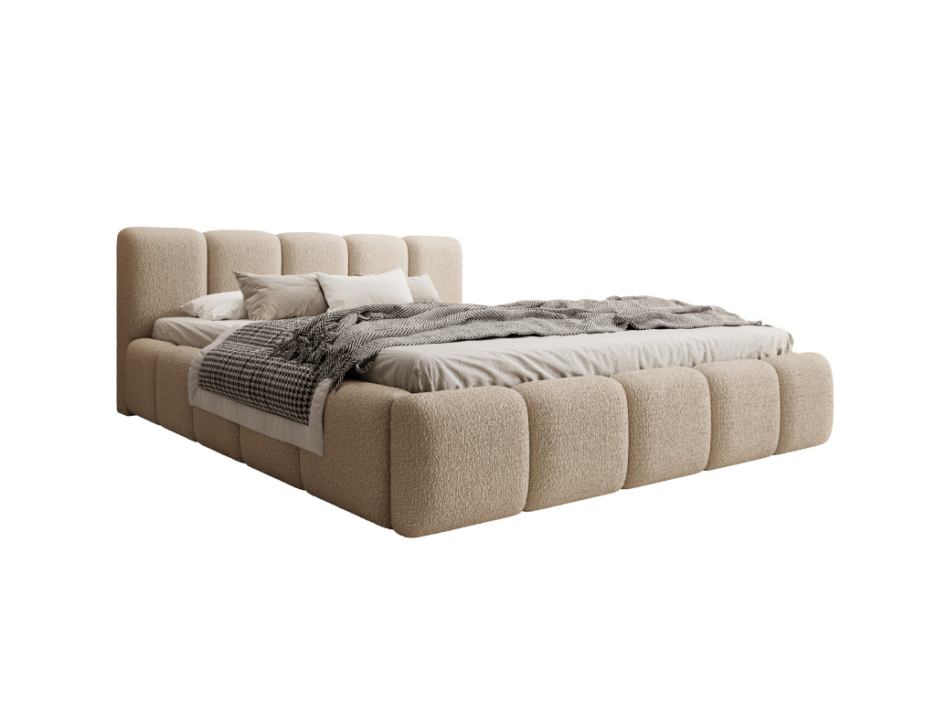 Čalouněná postel Fleur v rozměru 160 × 200 cm přináší minimalistický design s jemně zaobleným čelem o výšce 80 cm. Celková šířka postele je 182,5 cm a hloubka 222,5 cm. Výška boků i předního čela je 32 cm. Zadní čelo má tloušťku přibližně 13 cm, boky a přední část jsou široké 11 cm. Postel stojí na kluzácích o výšce 0,5 cm. Postel je vybavena úložným prostorem na lůžkoviny, který je vyroben z bílé HDF desky. Kostra postele je tvořena z kvalitní bílé laminované desky a dřeva. V základní ceně je zahrnut klasický dřevěný rošt bez vyklápění. Za příplatek lze po domluvě zvolit dřevěný rošt s plynovými písty nebo kovový rošt s plynovými písty (viz foto). Postel Fleur je ideální volbou pro ty, kteří hledají jednoduchost, pohodlí a funkční úložný prostor v moderním designu.