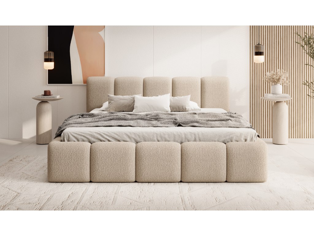 Čalouněná postel Fleur v rozměru 200 × 200 cm přináší minimalistický design s jemně zaobleným čelem o výšce 80 cm. Celková šířka postele je 222,5 cm a hloubka 222,5 cm. Výška boků i předního čela je 32 cm. Zadní čelo má tloušťku přibližně 13 cm, boky a přední část jsou široké 11 cm. Postel stojí na kluzácích o výšce 0,5 cm. Postel je vybavena úložným prostorem na lůžkoviny, který je vyroben z bílé HDF desky. Kostra postele je tvořena z kvalitní bílé laminované desky a dřeva. V základní ceně je zahrnut klasický dřevěný rošt bez vyklápění. Za příplatek lze po domluvě zvolit dřevěný rošt s plynovými písty nebo kovový rošt s plynovými písty (viz foto). Postel Fleur je ideální volbou pro ty, kteří hledají jednoduchost, pohodlí a funkční úložný prostor v moderním designu.