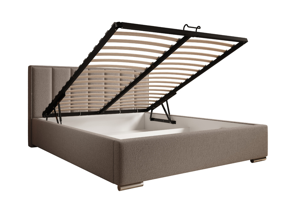 Čalouněná postel LEVI spojuje moderní design s komfortem a praktickým využitím, díky čemuž se stane dominantou každé ložnice. Plocha na spaní 120 × 200 cm nabízí dostatek prostoru pro klidný spánek i pohodlný odpočinek. Výrazným prvkem je čelo s měkce čalouněnými panely o tloušťce cca 3,5–4 cm a celkové hloubce čela přibližně 13 cm. Jeho výška 101 cm poskytuje ideální oporu při sezení nebo relaxaci. Přední část postele má výšku 31 cm, s nohami pak 35,5 cm. Rám postele je vyroben z kvalitní bílé laminované desky v kombinaci s pevným dřevem, úložný prostor na ložní prádlo je z odolné bílé HDF desky. Stylové chromované nožky o výšce 4,5 cm zajišťují stabilitu a dotvářejí celkový elegantní vzhled. Bočnice mají výšku 31 cm, s nohami pak 35,5 cm. Celkové rozměry postele jsou 137,5 cm na šířku a 220 cm do hloubky. V základní ceně je zahrnut klasický dřevěný rošt bez vyklápění. Za příplatek lze po domluvě zvolit dřevěný rošt s plynovými písty nebo kovový rošt s plynovými písty (viz foto). Postel LEVI je skvělou volbou pro ty, kteří hledají stylový a funkční prvek do své ložnice s důrazem na kvalitu a pohodlí.