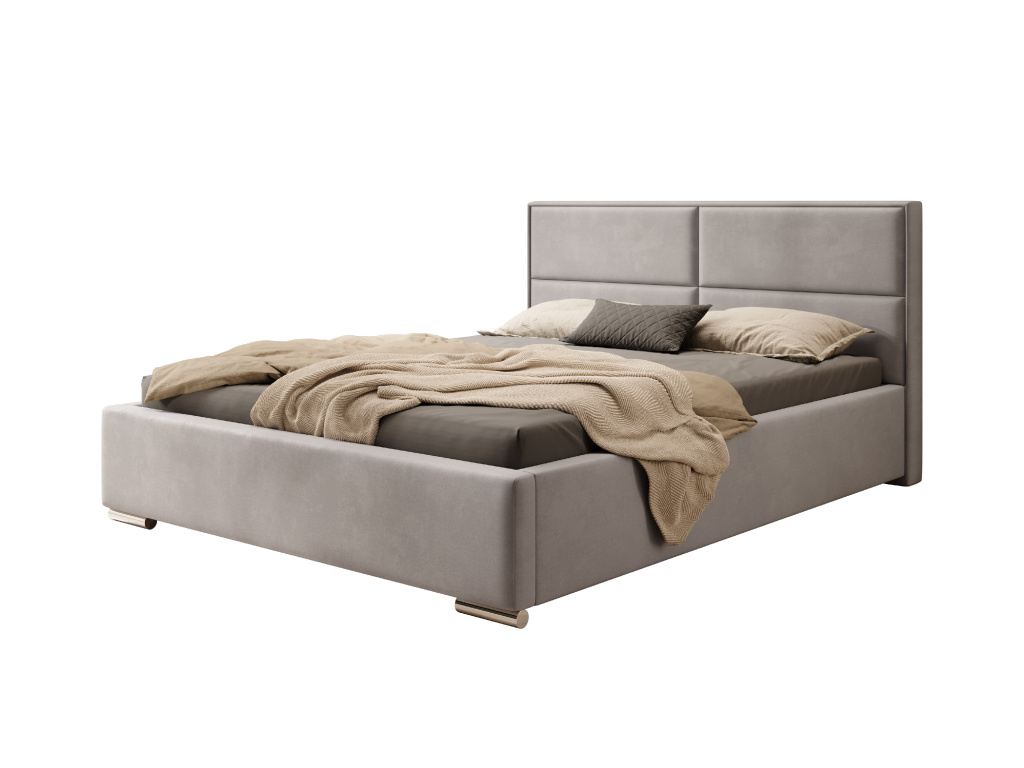 Čalouněná postel LORY propojuje elegantní design s praktickými detaily a vysokým komfortem. Plocha na spaní 180 × 200 cm poskytuje dostatek prostoru pro pohodlný odpočinek ve dvou. Dominantou postele je výrazné čelo s měkce čalouněnými panely o tloušťce 3,5–4 cm. Celková tloušťka čela činí přibližně 13 cm a výška dosahuje 101 cm, což zajišťuje komfortní oporu při sezení. Rám je vyroben z kvalitní bílé laminované desky v kombinaci s masivním dřevem, spodní část tvoří pevná HDF deska, která zakrývá prostorný úložný prostor na ložní prádlo. Stabilitu zajišťují chromované nožky o výšce 4,5 cm. Celkové rozměry postele jsou 197,5 cm na šířku, 220 cm na hloubku. Výška čela s nohami je 101 cm. Výška čela postele (přední část) je 31 cm, s nohami 35,5 cm. Bočnice mají stejnou výšku – 31 cm bez nožek, 35,5 cm s nožkami. V základní ceně je zahrnut dřevěný rošt bez vyklápění. Za příplatek je po domluvě možné zvolit dřevěný rošt s plynovými písty nebo kovový rošt s plynovými písty (viz foto). Postel LORY je skvělou volbou pro ty, kdo hledají spojení moderní estetiky, funkčnosti a pohodlí ve své ložnici.