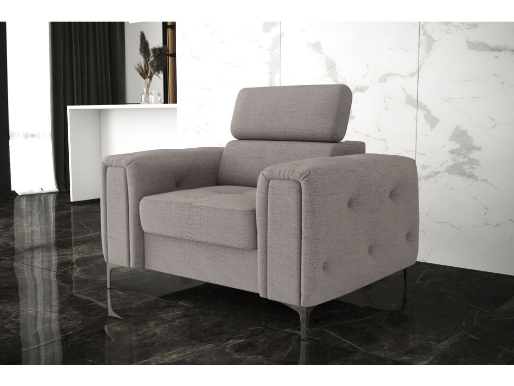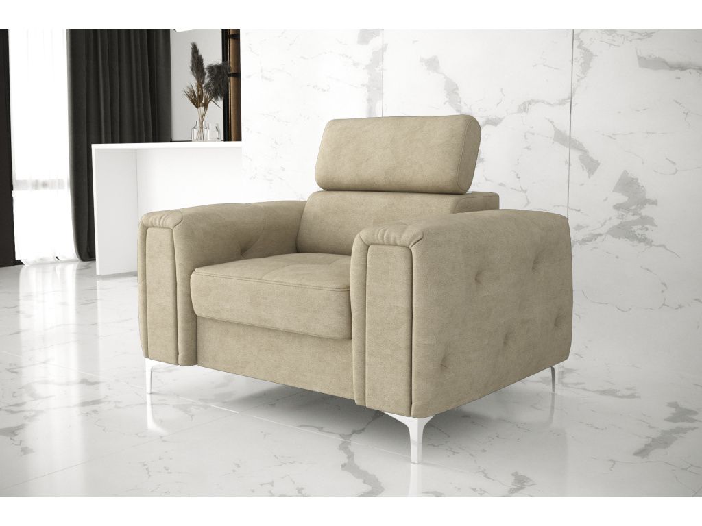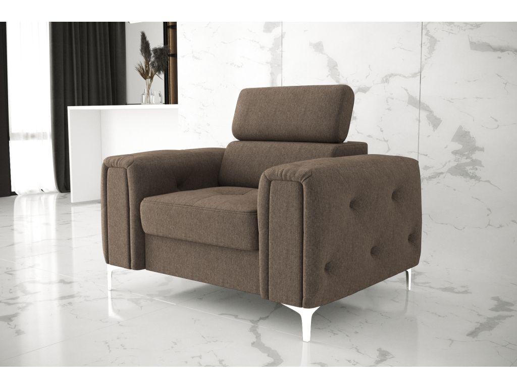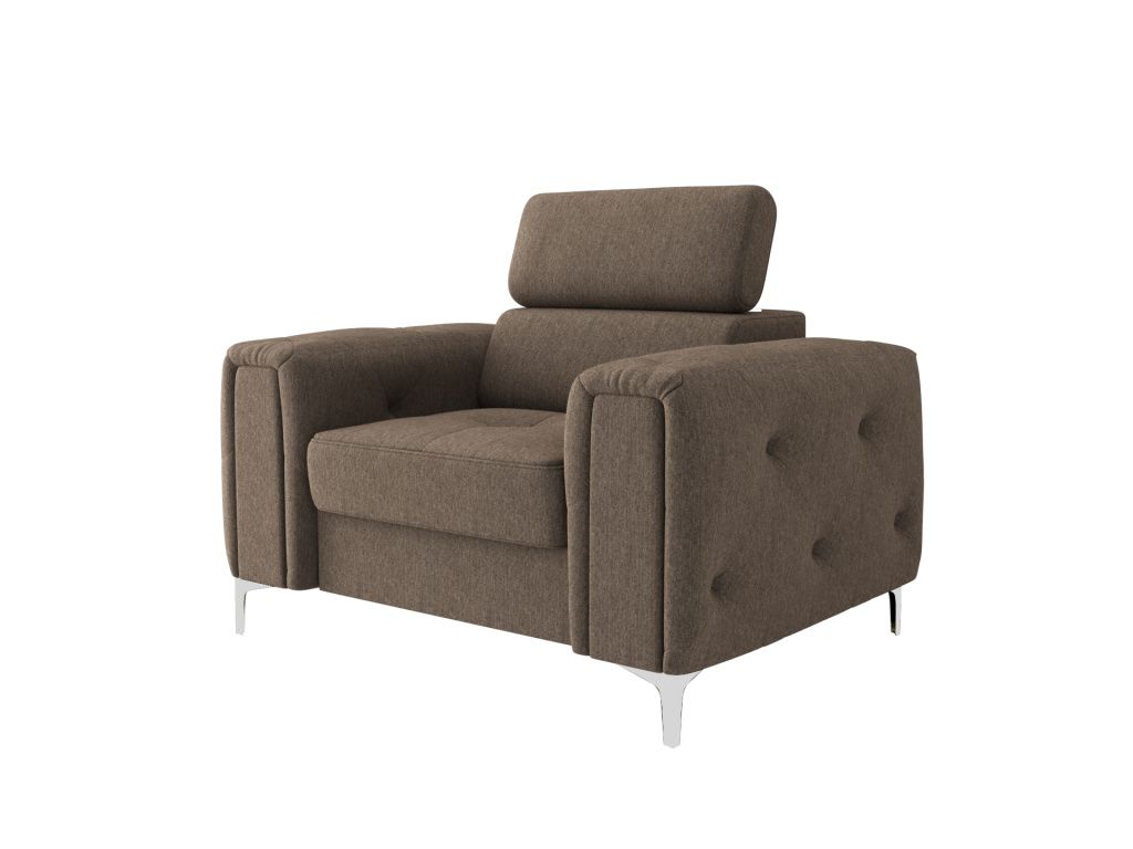 Čalouněné křeslo Orion 110 cm je elegantní a komfortní doplněk, který vnese do vašeho interiéru jedinečný styl a pohodlí. Tento model z naší nejoblíbenější kolekce zaujme především okouzlujícími prošívanými bočnicemi, které dodávají křeslu charakter a sofistikovaný vzhled, zatímco dekorativní prošívání na sedáku a bocích podtrhuje precizní zpracování každého detailu. Křeslo nabízí nastavitelnou opěrku hlavy, která umožňuje přizpůsobit sedací pozici vašim potřebám, a vysoké 13 cm kovové nožky ve stříbrném nebo černém provedení usnadňují úklid i s robotickým vysavačem. Sedák je vyroben z kombinace vlnitých pružin a vysoce pružné pěny T35+HR, což zaručuje optimální komfort a dlouhou životnost, zatímco rám z dřeva a dřevotřísky poskytuje pevnou konstrukci odpovídající vysoké kvalitě. Díky širokému výběru látek – od sametu přes žinylku až po umělou kůži – si křeslo Orion můžete dokonale přizpůsobit vašemu interiéru, přičemž všechny materiály jsou odolné, snadno čistitelné a vhodné pro domácí mazlíčky, což z tohoto křesla činí nejen stylový, ale i praktický kus nábytku, který se stane nepostradatelnou součástí vašeho domova.