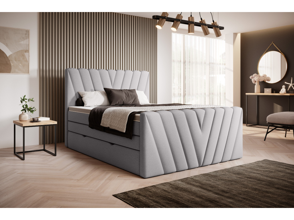Kontinentální postel Candice vnáší do ložnice odvahu díky čalounění dostupnému v mnoha různých barvách z kolekce látek Natali. Kromě toho je výrobek k dispozici ve 3 velikostech spací plochy: rozměry: 140/160/180x200 cm. Boxspring Candice bude jistě atraktivním základem mnoha ložnic, protože je stylový a pohodlný zároveň. Čalouněná záda tohoto kusu nábytku umožňují jeho umístění v různých konfiguracích, a to i uprostřed místnosti. Další výhodou naší čalouněné postele jsou mimořádně pohodlné matrace, které jsou součástí soupravy. jako postel boxspring je Candice vybavena spodní matrací a horní matrací. První z nich je vyplněna pěnou T25 a pružinami Bonnel. Tvrdost spodní matrace je H2/3, zatímco stupeň tvrdosti vrchní matrace je H3. Vrchní matrace této čalouněné postele je navíc oboustranná a vybavená zipem. To jistě usnadní udržování matrace v čistotě. Díky všem těmto prvkům je kontinentální postel Candice neuvěřitelně pohodlná a vypadá krásně v každém interiéru.