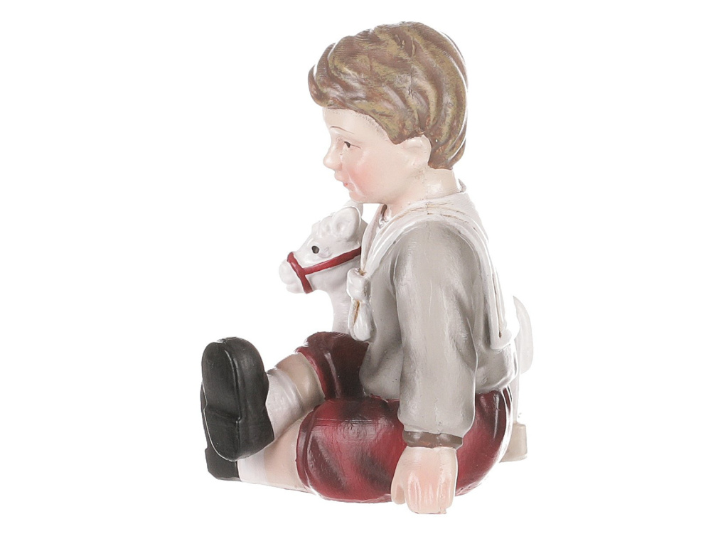 Tato nádherná figurka z polyresinu zobrazuje svátečně oděného chlapce, který s láskou hýčká svou nejoblíbenější hračku v podobě bílého koníka. Představuje zde jeho nejlepšího kamaráda, se kterým společně sdílí radosti i strasti. Společně jakoby čekají na samotný příchod Ježíška, aby se mohli těšit z dárků, které dostanou. Tato figurka je nejen krásnou a nevšední ozdobou, ale i připomenutím síly přátelství a radosti, které nám Vánoce mohou přinést. Ať už ji postavíte kamkoliv, bude vám připomínat, že mezi nejcennější dary nepatří jen fyzické, nýbrž ty v podobě lásky, přátelství a vzájemného porozumění.Doplňkové parametry