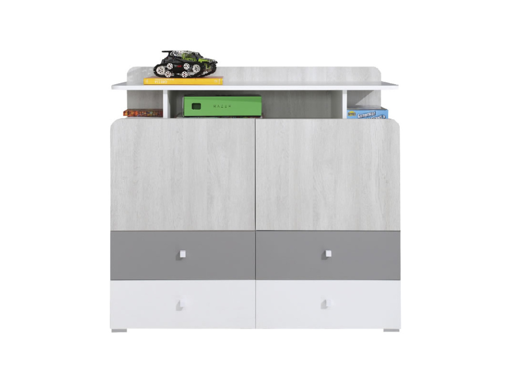 Dětská komoda Como, bílý lesk/dub Wilton bílý/šedá