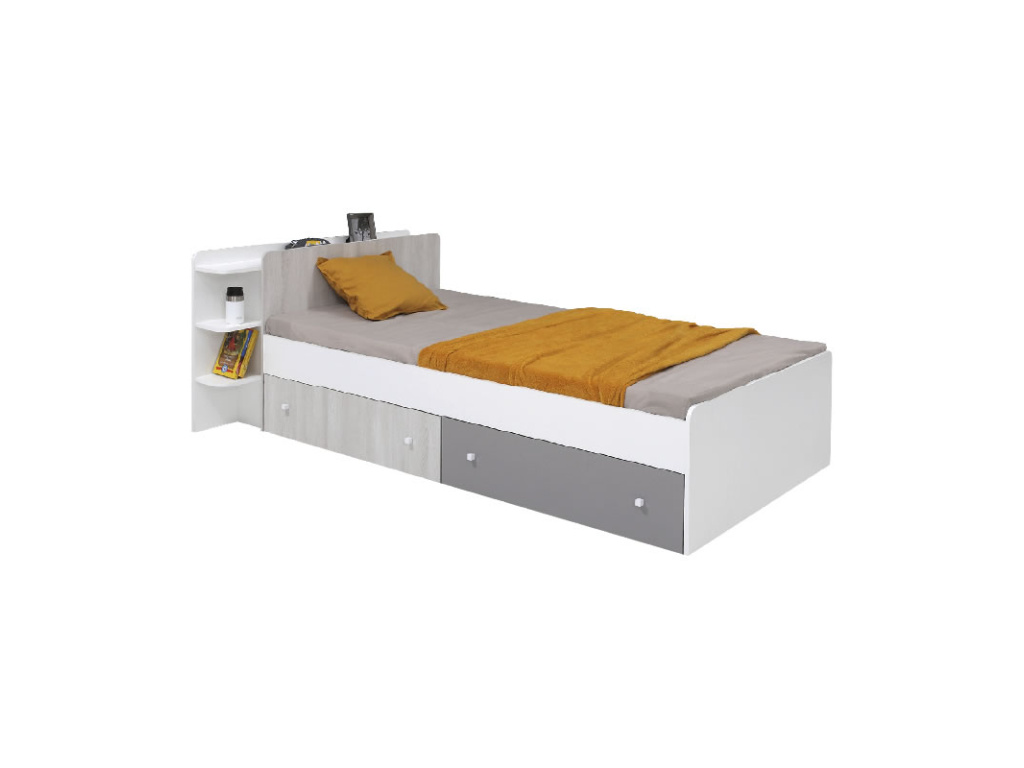 Dětská postel Como CM12, bílý lesk/dub Wilton bílý/šedá