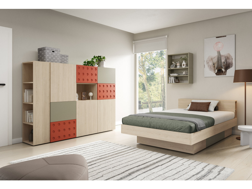 Dětský pokoj Salsa B je praktická sestava nábytku navržená pro každodenní využití v dětském nebo studentském pokoji. Sestava obsahuje postel, komody a regál, které společně vytvářejí funkční a přehledně uspořádaný prostor pro spaní i ukládání věcí. Díky jednotnému designu kolekce Salsa lze sestavu snadno kombinovat s dalšími prvky systému.