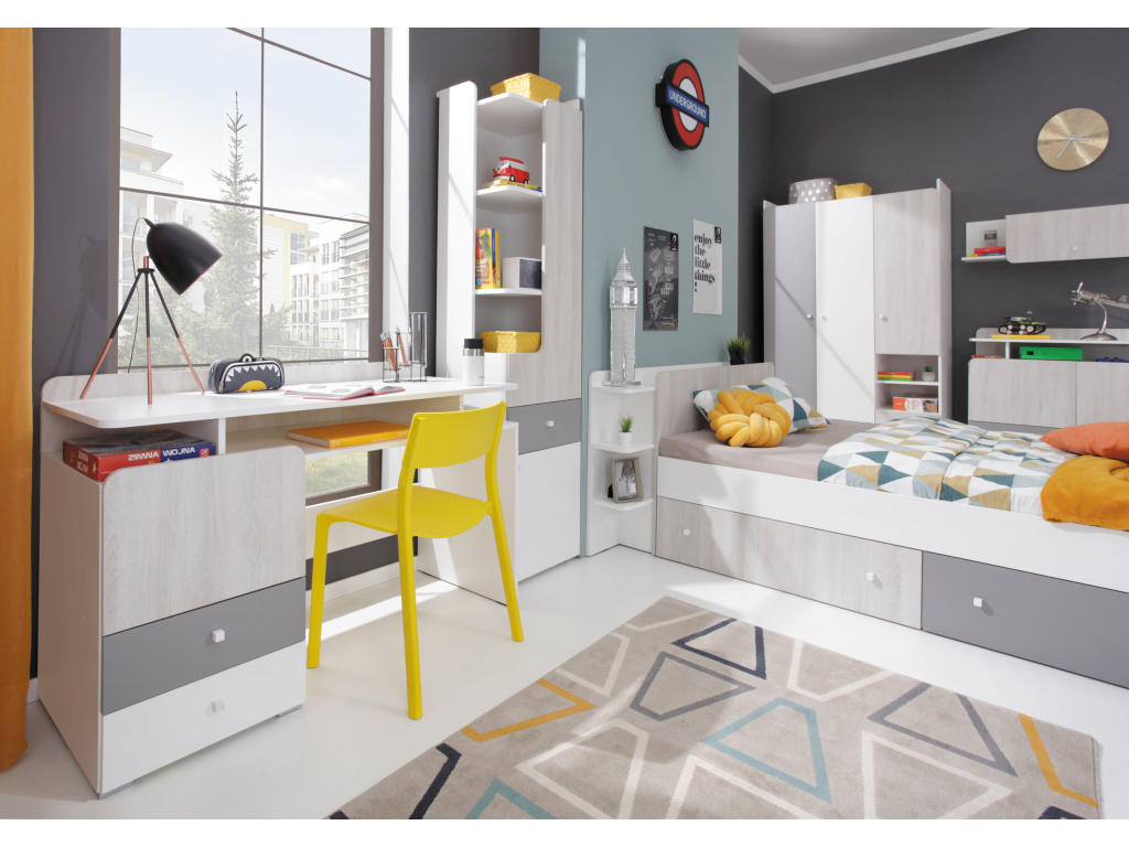 Začněte podporovat kreativitu a učení vašeho dítěte již dnes s naším dětským psacím stolem Como. Tento elegantně navržený stůl, s dokonalým mixem bílého lesku, dubu Wilton a šedé barvy, se stane okamžitým centrem každé dětské místnosti.
