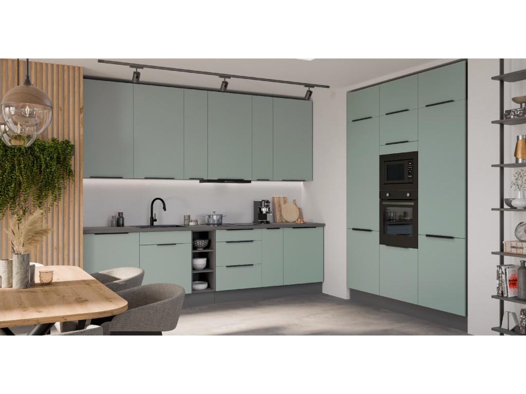 Spodní zakončovací skříňka Aria ANT 30 D ZAK BB slouží k elegantnímu ukončení kuchyňské linky a pomáhá vytvořit plynulý a čistý vzhled celé sestavy. Sektorová kuchyň Aria ANT představuje moderní spojení minimalistického designu a praktičnosti. Antracitový korpus dodává kuchyni výrazný a nadčasový charakter, zatímco hladká dvířka s technologií Anti-Fingerprint jsou dostupná v pěti elegantních odstínech: černá, akvamarín, sandgrau, grafit a crystal white. Součástí skříněk je kvalitní kování s tichým dovíráním, zásuvky PREMIUM BOX a černé kovové úchytky. Skříňky jsou variabilní, s univerzálním otevíráním dvířek (levé/pravé) a nastavitelnými nožičkami pro snadné vyrovnání.