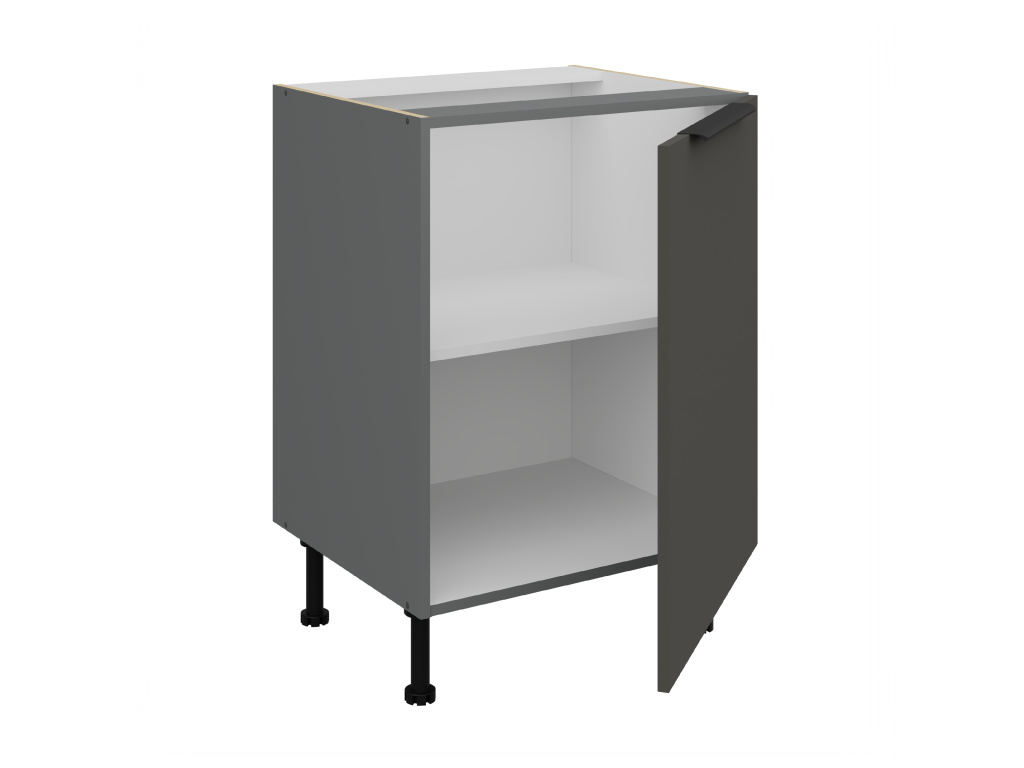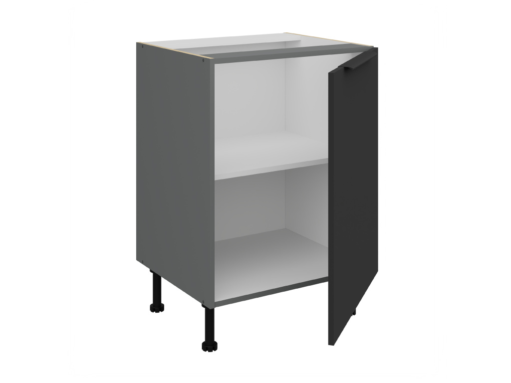 Spodní skříňka Aria ANT 60 D 1F BB je praktickým základem spodní části kuchyňské linky. Nabízí dostatek úložného prostoru pro kuchyňské náčiní či potraviny. Sektorová kuchyň Aria ANT představuje moderní spojení minimalistického designu a praktičnosti. Antracitový korpus dodává kuchyni výrazný a nadčasový charakter, zatímco hladká dvířka s technologií Anti-Fingerprint jsou dostupná v pěti elegantních odstínech: černá, akvamarín, sandgrau, grafit a crystal white. Součástí skříněk je kvalitní kování s tichým dovíráním, zásuvky PREMIUM BOX a černé kovové úchytky. Skříňky jsou variabilní, s univerzálním otevíráním dvířek (levé/pravé) a nastavitelnými nožičkami pro snadné vyrovnání.