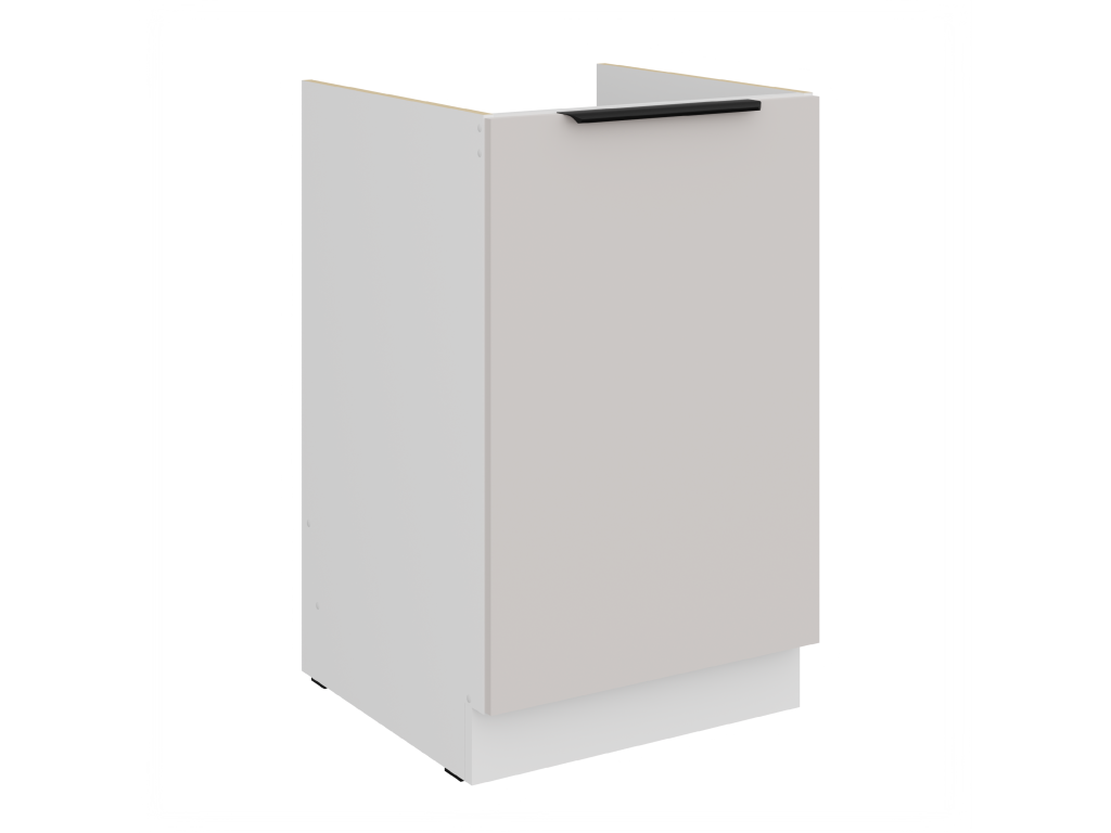 Dolní skříňka COMO 50 ZL 1F BB je dřezová varianta s jednou dvířkovou částí, navržená pro praktické využití prostoru pod dřezem v moderním kašmírovém designu. Kuchyně COMO představuje harmonické spojení kašmírových dvířek s čistě bílým korpusem a moderně laděným designem. Světlé provedení dodává prostoru vzdušnost a pocit lehkosti, zatímco propracované detaily podtrhují minimalistický a nadčasový charakter celé sestavy. Korpus i dvířka z kvalitní laminované desky zajišťují dlouhou životnost a snadnou údržbu. Design doplňují elegantní černé hliníkové úchytky, zásuvky s hladkým chodem typu Premium Box a dvířka vybavená systémem tichého dovírání pro maximální komfort při každodenním používání.