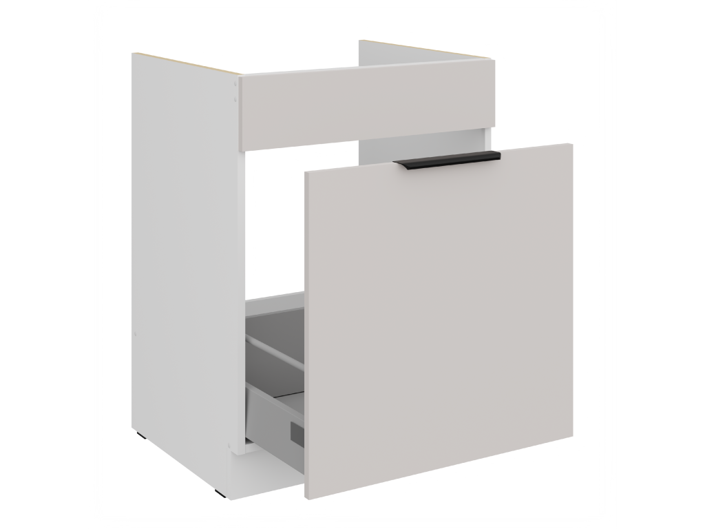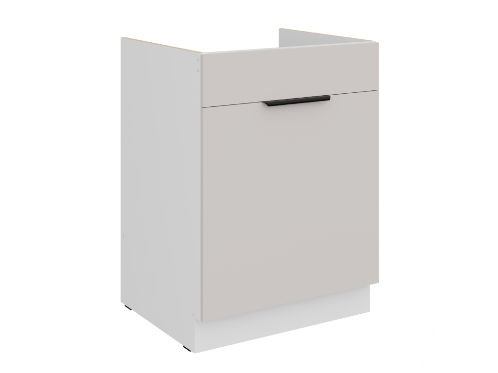 Dolní skříňka COMO 60 ZL 1S BB PREMIUM BOX je dřezová skříňka s jednou zásuvkou, navržená pro praktické využití prostoru pod dřezem v moderním kašmírovém designu s tichým a komfortním dovíráním. Kuchyně COMO představuje harmonické spojení kašmírových dvířek s čistě bílým korpusem a moderně laděným designem. Světlé provedení dodává prostoru vzdušnost a pocit lehkosti, zatímco propracované detaily podtrhují minimalistický a nadčasový charakter celé sestavy. Korpus i dvířka z kvalitní laminované desky zajišťují dlouhou životnost a snadnou údržbu. Design doplňují elegantní černé hliníkové úchytky, zásuvky s hladkým chodem typu Premium Box a dvířka vybavená systémem tichého dovírání pro maximální komfort při každodenním používání.