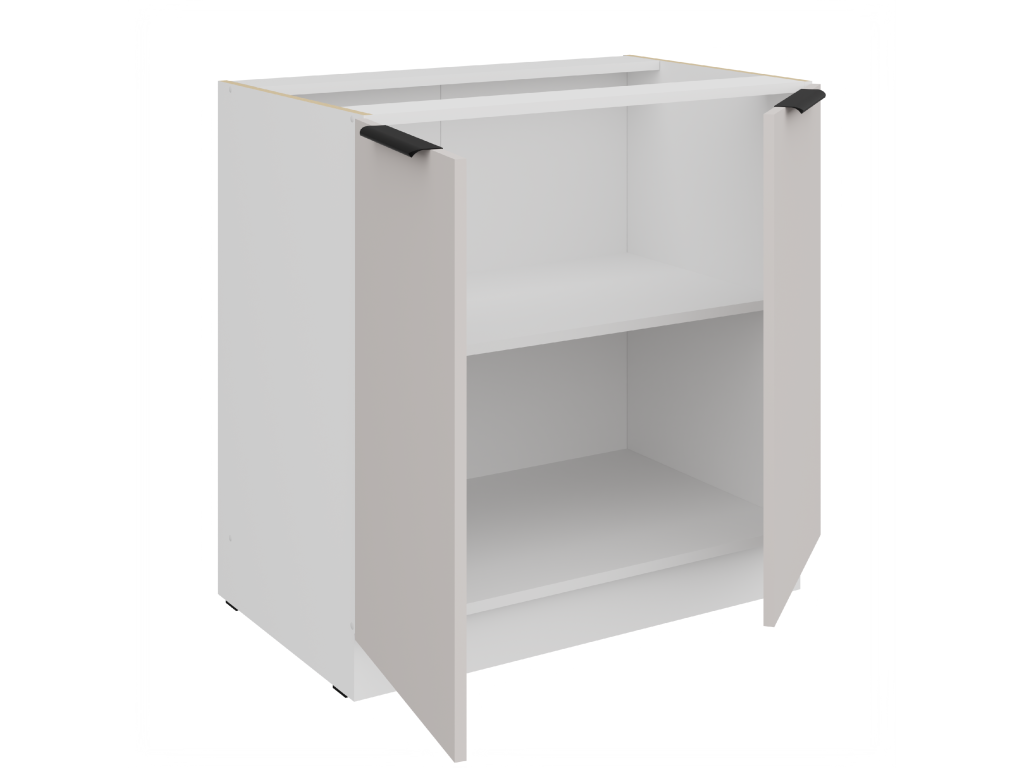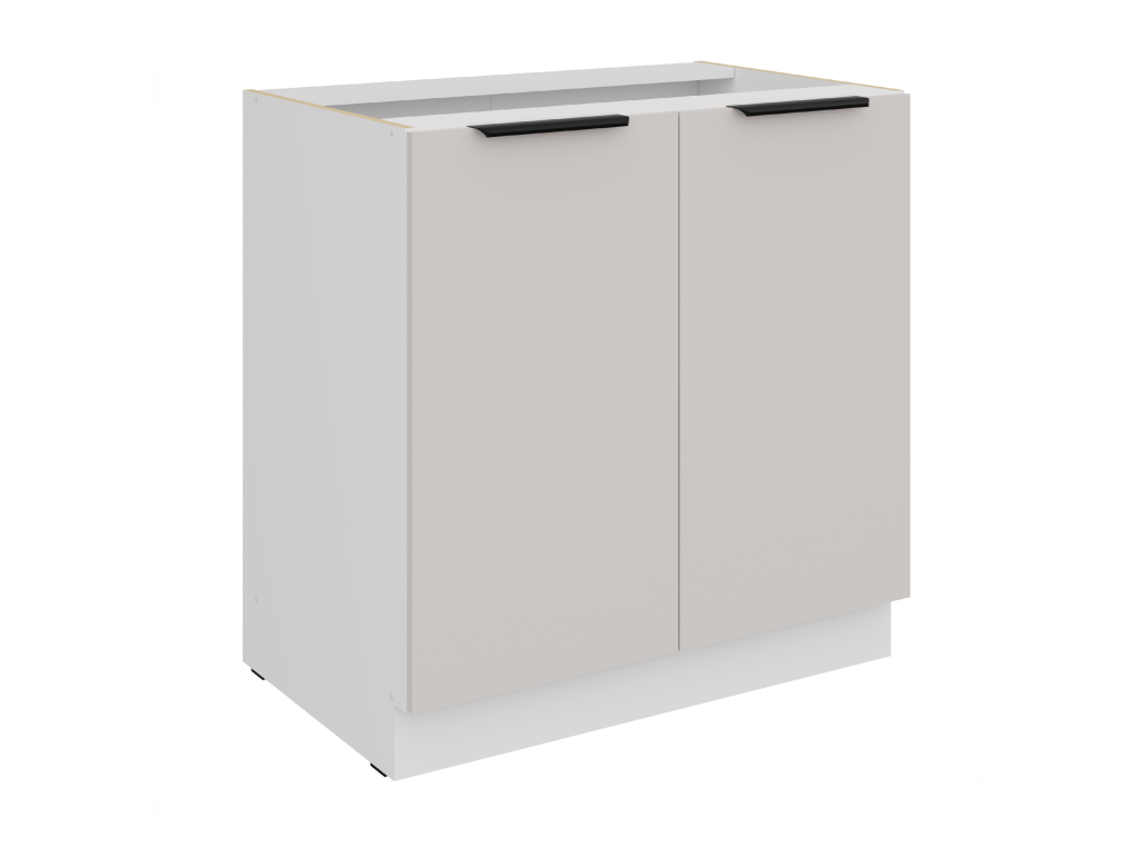 Dolní skříňka COMO 80 D 2F BB se dvěma dvířky nabízí přehledný úložný prostor v moderním kašmírovém designu. Kuchyně COMO představuje harmonické spojení kašmírových dvířek s čistě bílým korpusem a moderně laděným designem. Světlé provedení dodává prostoru vzdušnost a pocit lehkosti, zatímco propracované detaily podtrhují minimalistický a nadčasový charakter celé sestavy. Korpus i dvířka z kvalitní laminované desky zajišťují dlouhou životnost a snadnou údržbu. Design doplňují elegantní černé hliníkové úchytky, zásuvky s hladkým chodem typu Premium Box a dvířka vybavená systémem tichého dovírání pro maximální komfort při každodenním používání.