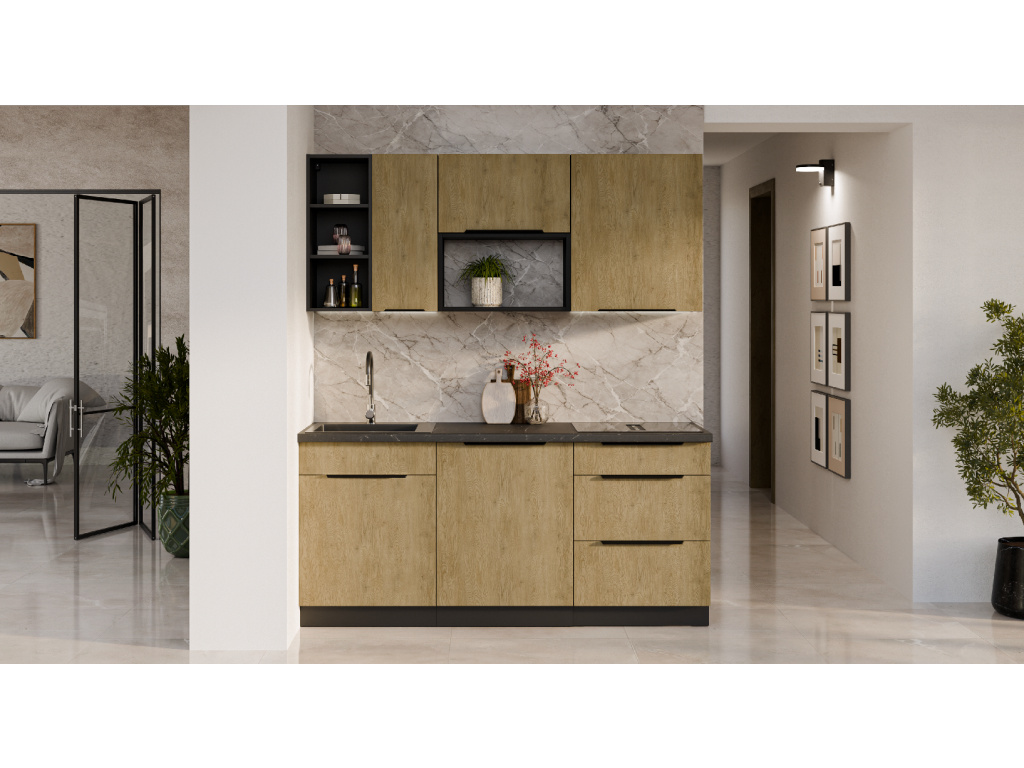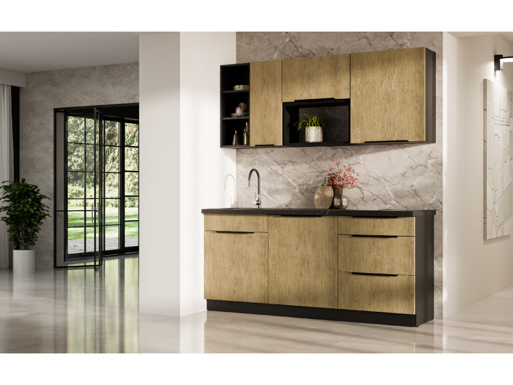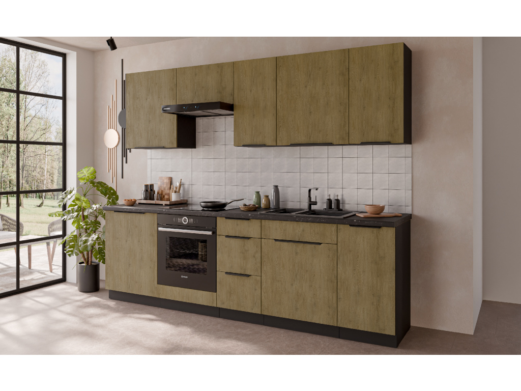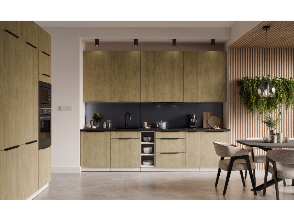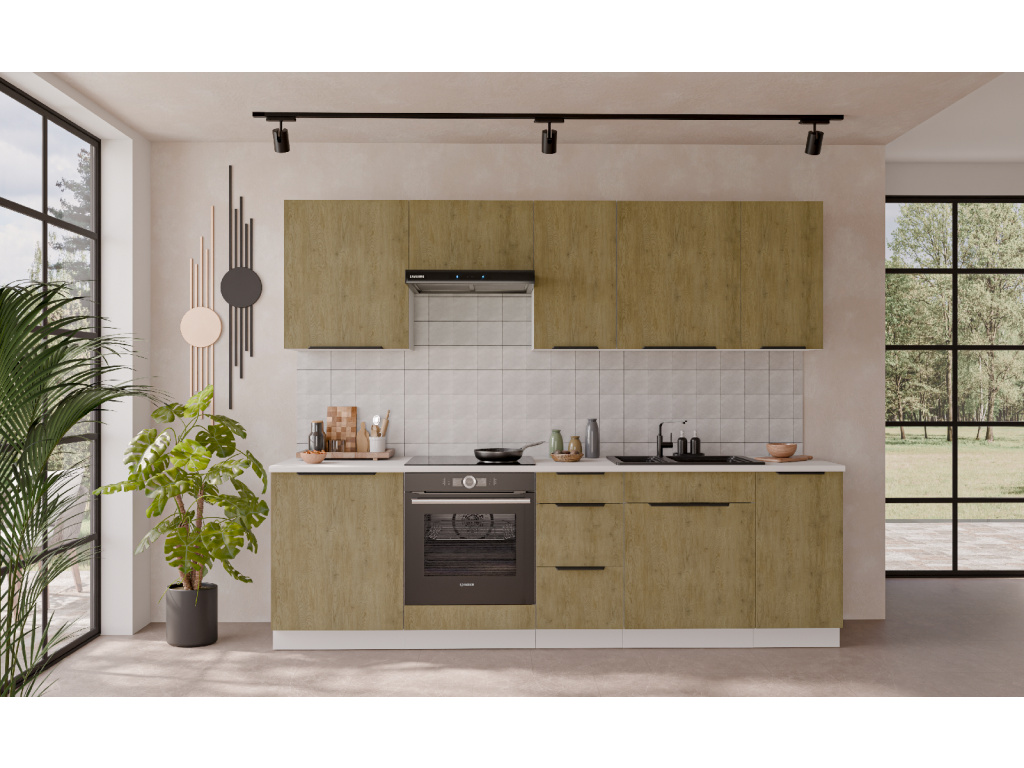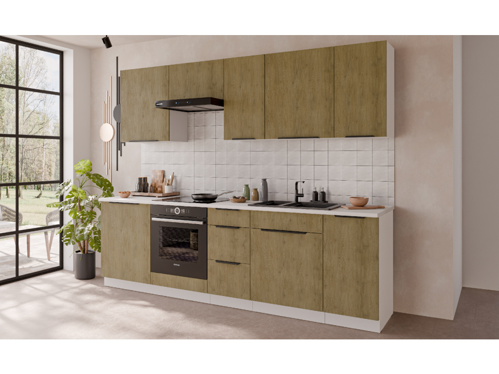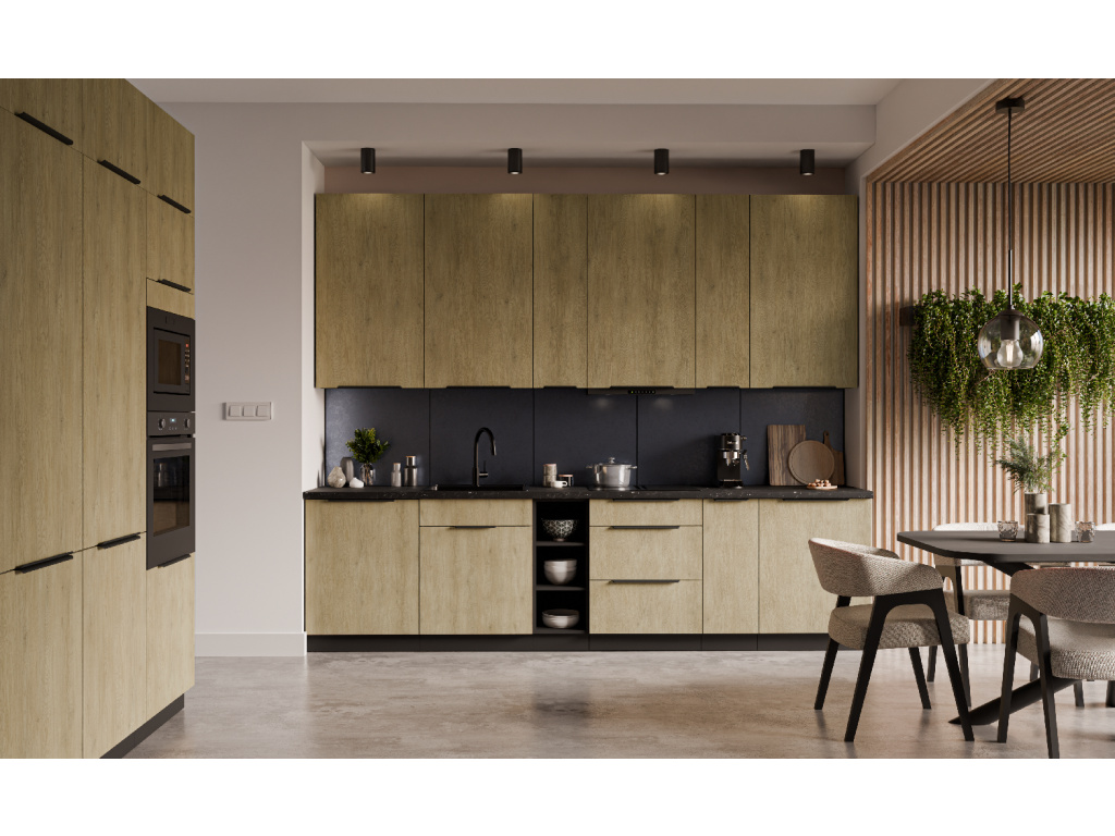 Dolní kuchyňská skříňka z kolekce CREMONA nabízí tři prostorné zásuvky s prémiovým systémem PREMIUM BOX, který zajišťuje plnovýsuv a tiché dovírání pro maximální pohodlí při používání. Korpus je vyroben z 16 mm laminované desky, dostupné v černé nebo bílé barvě, zadní část tvoří 2,5 mm HDF deska v bílé barvě. Čela zásuvek jsou z 16 mm laminované desky v dekoru dub Cremona, který dodává nábytku přírodní a moderní vzhled. Skříňka je doplněna černými hliníkovými úchytkami UA-HEXA s hranou s roztečí od 64 mm do 320 mm, což zajišťuje pohodlné otevírání. Díky třem zásuvkám je tento model ideální pro organizaci kuchyňských potřeb a příborů v elegantním designu.