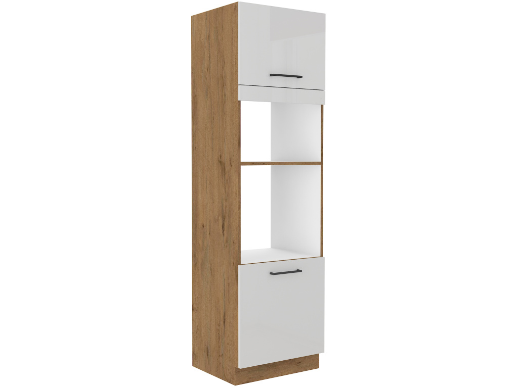 Představujeme vám dolní vysokou skříňku na spotřebiče, troubu a mikrovlnku 60 DPM-210 2F - VIGO Bílá lesk, která je ideálním doplňkem pro moderní kuchyni. Tato skříňka o rozměrech 600 x 2100 x 570 mm (š x v x h) nabízí dostatek prostoru pro vestavné spotřebiče a zároveň funguje jako stylový a praktický úložný prostor. Skříňka je dodávána ve dvou baleních pro snadnou montáž. Přední strana skříňky je zhotovena z 16 mm MDF desky s bílým leskem, což jí dodává moderní a luxusní vzhled. Hrany jsou opatřeny ABS hranou o tloušťce 1 mm v bílém lesku, což zajišťuje vyšší odolnost proti poškození. Kovová rukojeť o délce 192 mm je navržena pro pohodlné otevírání a dlouhou životnost. Panty s tichým zavíráním přispívají k tichému a pohodlnému provozu. Korpus skříňky je vyroben z 16 mm laminované desky v dekoru dub lancelot, zatímco zadní strana je z HDF desky o tloušťce 2,5 mm v bílém provedení. Laminové lemování hran a interiér v bílé barvě dodávají skříňce čistý a moderní vzhled. Tato skříňka je navržena tak, aby byla praktická a esteticky příjemná, což z ní činí ideální volbu pro každou kuchyni, která hledá kombinaci stylu a funkčnosti.Doplňkové parametry