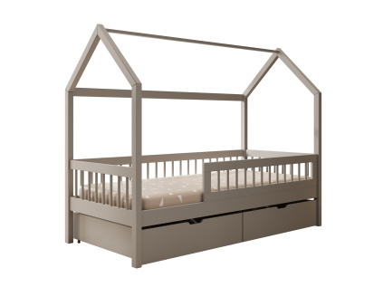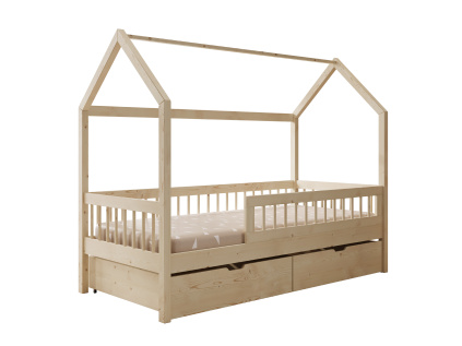 Postel Galicja House je jedinečný kus nábytku, který kombinuje funkčnost s designem inspirovaným útulnou skandinávskou estetikou. Postel je vyrobena z masivního dřeva, nabízí stabilitu a odolnost a zároveň dodává místnosti hřejivé, přírodní kouzlo. Její rám ve tvaru domečku podněcuje dětskou představivost a vytváří útulný prostor pro hru i odpočinek. Je ideální jako ústřední prvek dětského pokoje, který poskytuje pohodlný prostor pro spánek a zároveň inspiruje k tvůrčí hře. Jednoduchý tvar a přírodní povrchová úprava zajišťují, že postel Galicja harmonicky zapadne do každého interiéru bez ohledu na styl zařízení. Matrace je součástí balení.